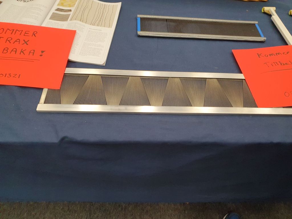 Jag älskar att gå på mässor. Kreativitetsdepån blir verkligen påfylld när man får klappa garner i regnbågens alla färger, bläddra i nya inspirerande böcker, bekanta sig med redskap man inte sett förut och se hur andra utnyttjat varierande tekniker för att få fram olika uttryck. På vävmässan i Halmstad såg jag t.ex. en solfjädersvävsked för första gången. Så här ser en sån ut:
