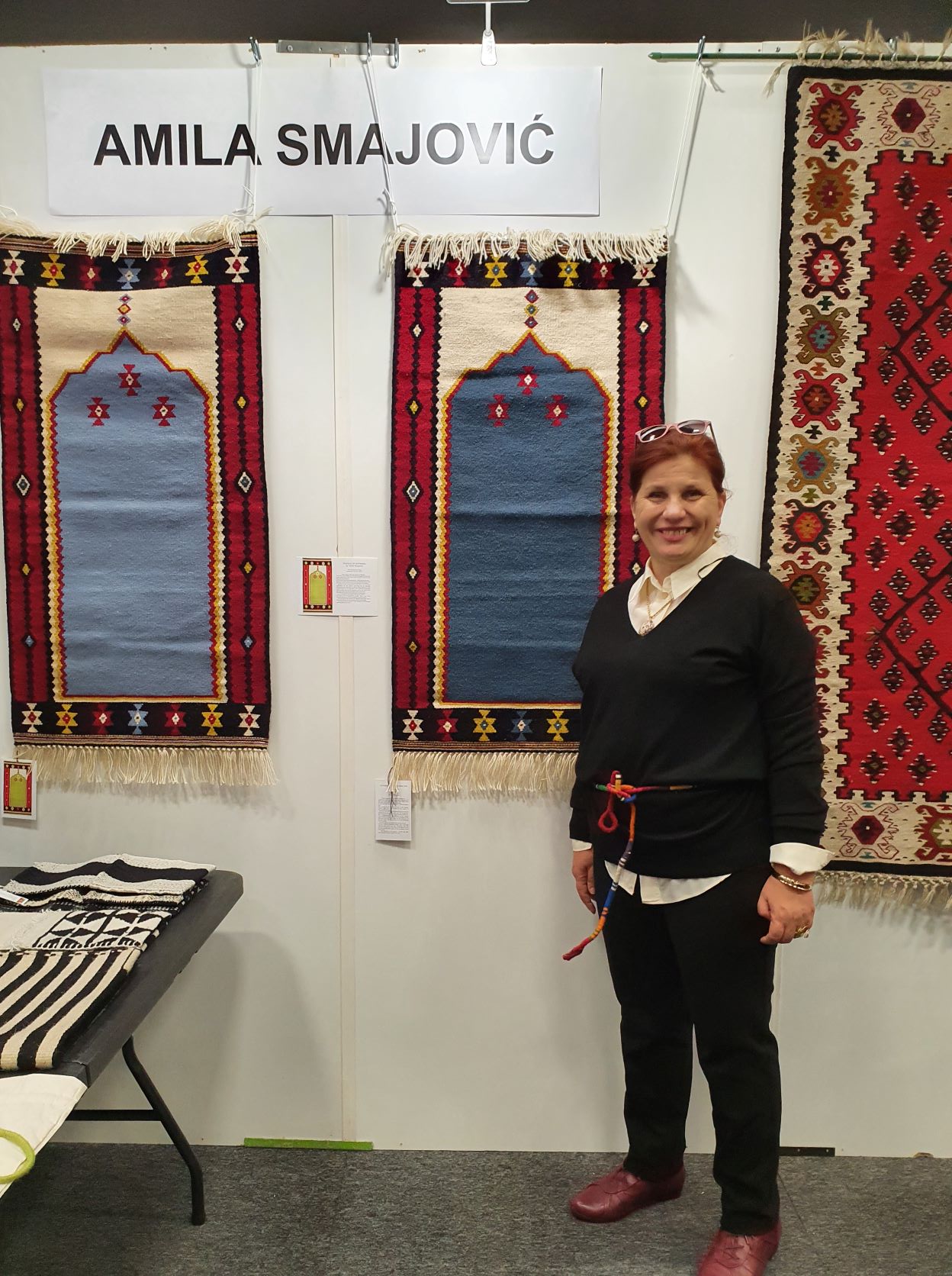 Alla möten med människor från olika kulturer på en vävmässa är också väldigt spännande. Amila Smajovic’ från Bosnien visade bl.a. bönemattor som hon vävt med inspiration av en bönematta från Kungamoskén i Foca som förstördes i kriget 1992.