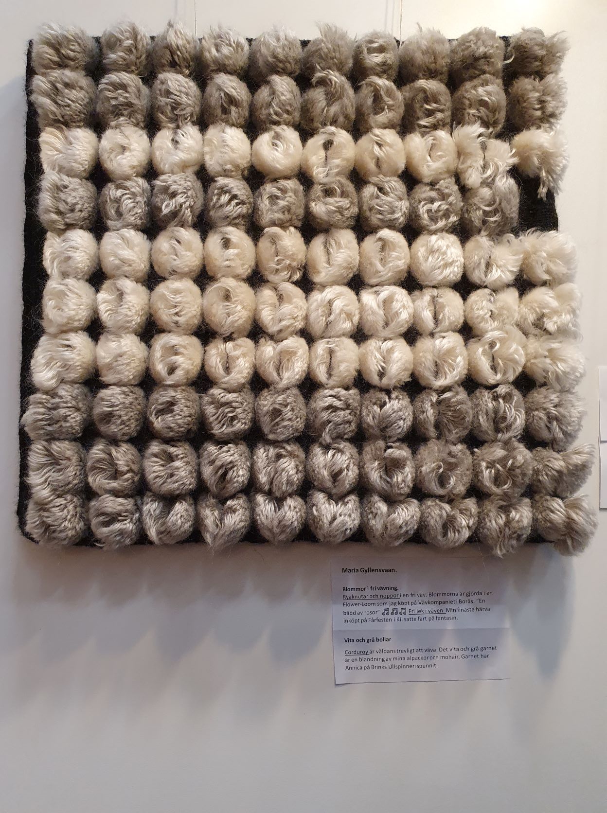 Nätverket Vävformgivning är en ideell förening i Västra Götaland. De väljer ett tema att arbeta kring och under 2-3 år arrangerar de utbildningar, föreläsningar, resor och studiebesök kring temat. Här ser du ett deras senaste tema ”Yta och struktur i väven”. Här är ett axplock av vad de visade:
