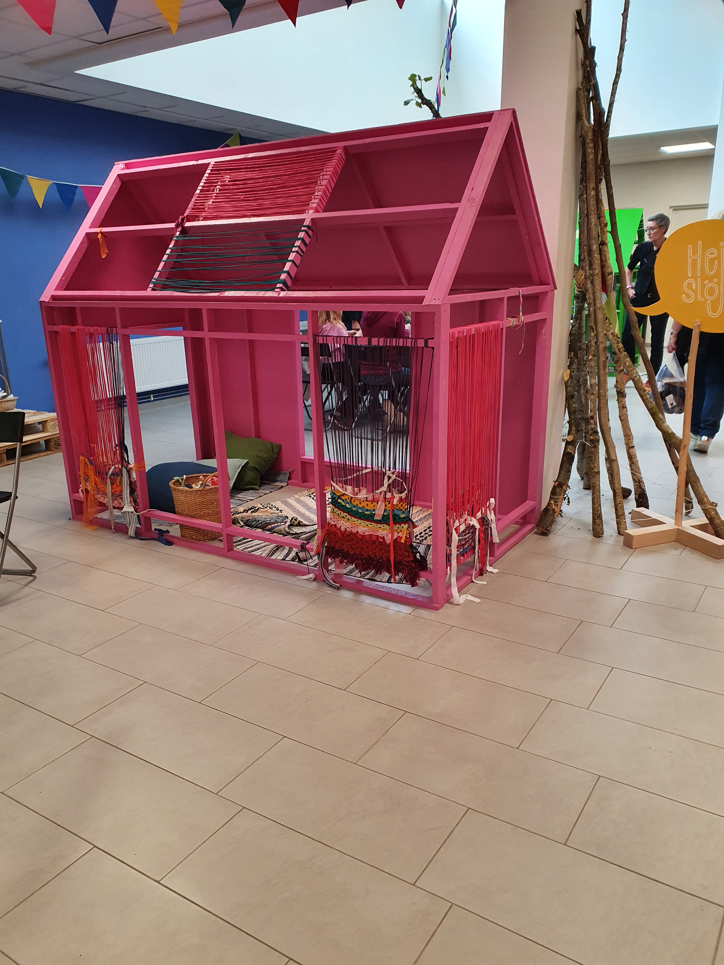ett helt hus där barnen vävde väggar och tak med mattrasor!