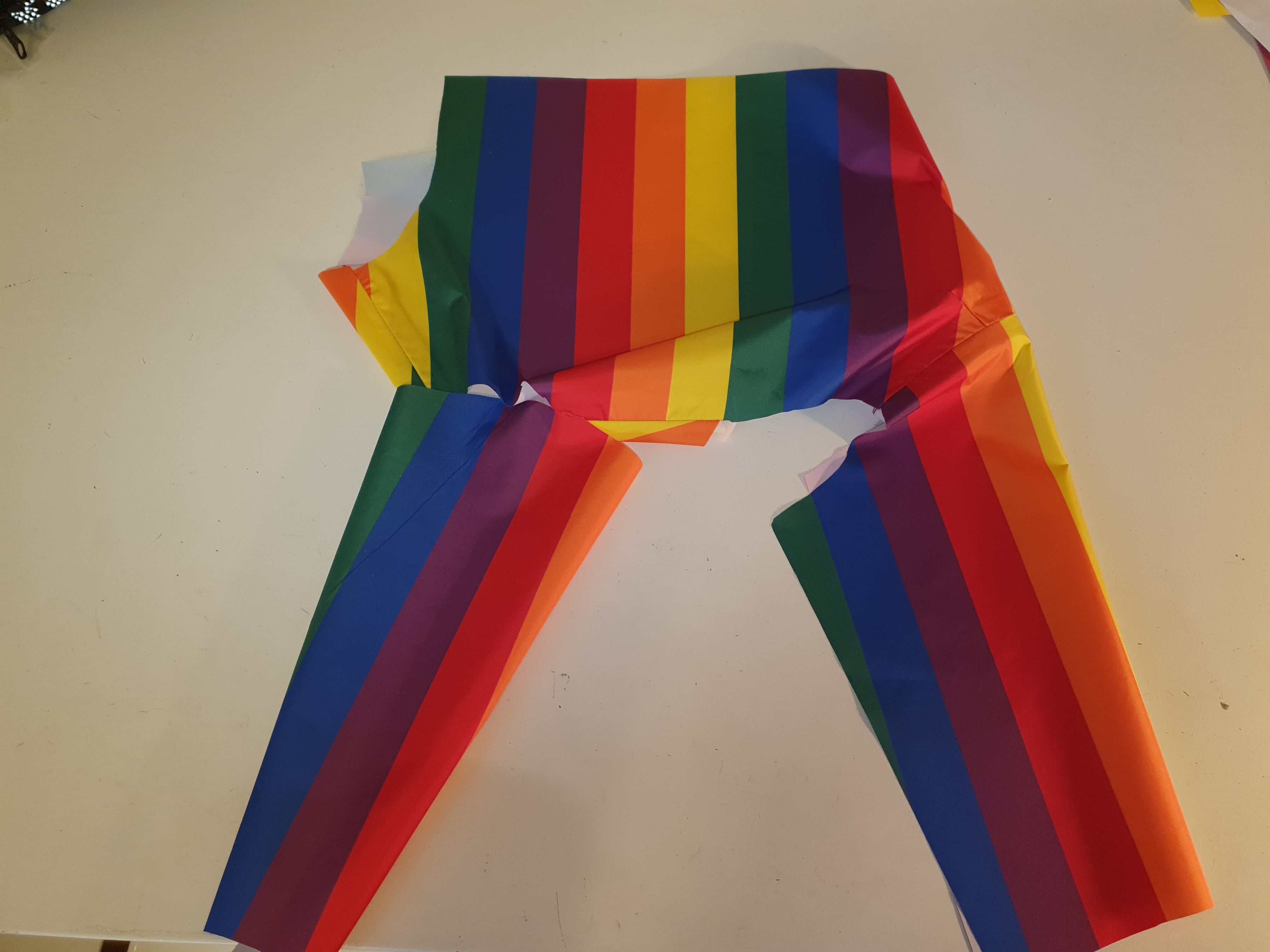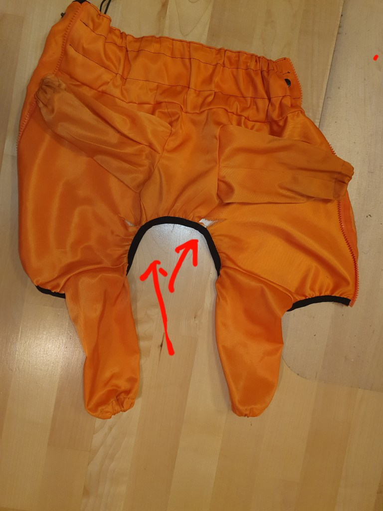 Jag har faktiskt precis börjat på en ny regnoverall till honom, i regntyg, men det vete sjutton om jag syr färdigt den. Efter den fartfyllda promenaden då overallen sprack bestämde jag mig för att klippa om själva kroppen och göra den 2 cm längre för mer rörelsevidd. Tur att jag beställt mycket tyg! Försökte mönsterpassa – gick sådär. Strök på speciell tejp över sömmarna för att göra dem vattentäta – gick väl bra på bakbenet men hur i hela friden ska det gå till där fram där man ska sy ihop benet först och sen sy fast det lilla benet på overallen. Den senare sömmen begriper jag inte hur jag ska kunna stryka tejp på? Verkar jättekrångligt! Nu har jag dessutom hittat en firma som säljer regnoveraller med olika benlängd (det var ju för att benen i hans första köpta overall var för korta som jag började försöka sy en overall själv) så just nu är motivationen att sy overallen färdig lika låg som Fendis var imorse när han skulle på morgonpromenad.