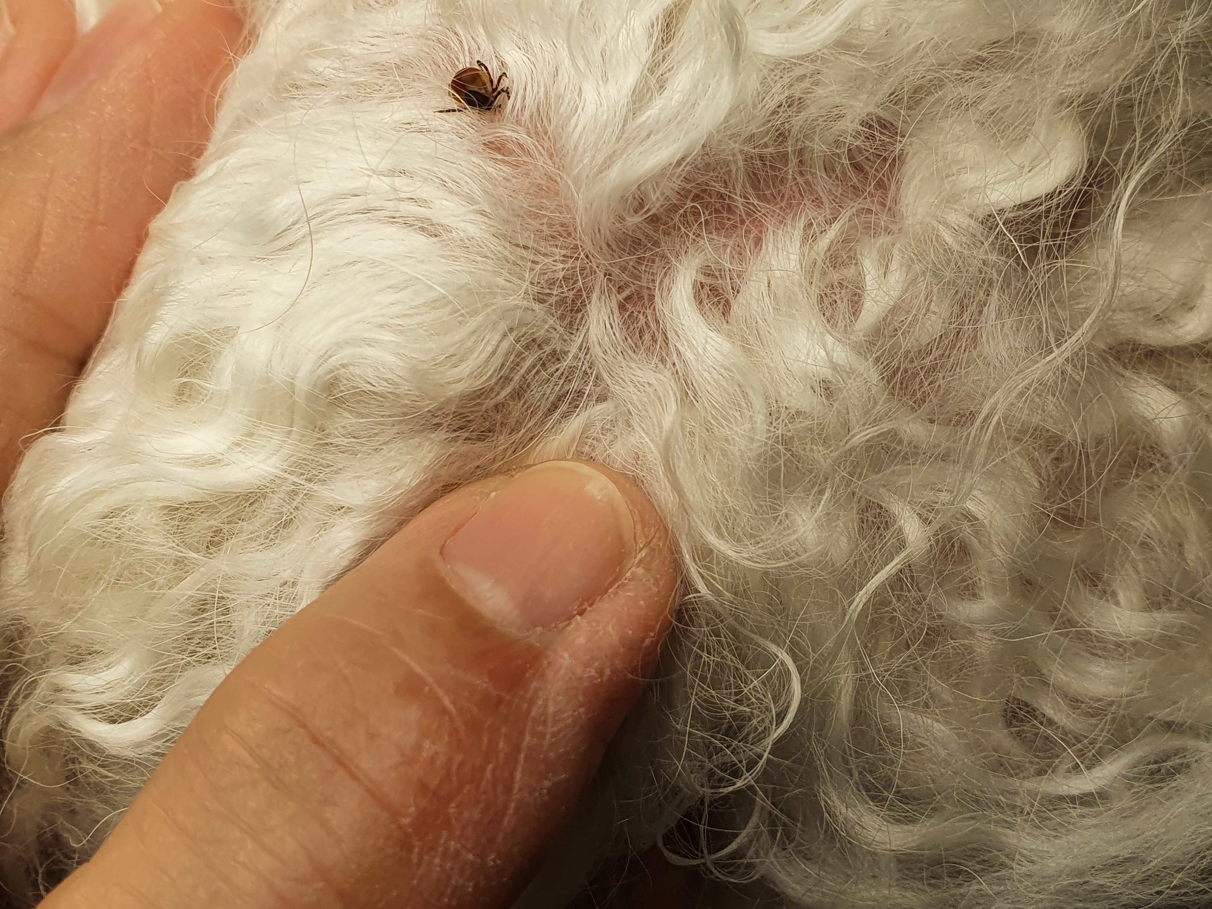 Igår, lördag, var vi i Halmstad och solen strålade från en klarblå himmel. Idag är vi hemma i Åled och det regnar men det gör ingenting för det är rätt skönt att vara inne och greja ibland också. På förmiddagen badade jag Fendi. Han hade blivit dammig i stan. Och nånstans har han dragit på sig denna lilla fripassagerare trots att han fick Bravecto i veckan.