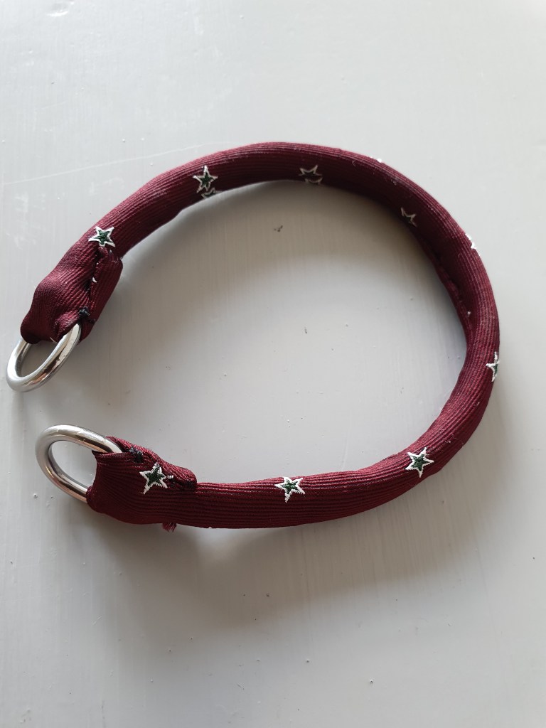 Det här är ett av de tidigare halsbanden, i äkte siden: