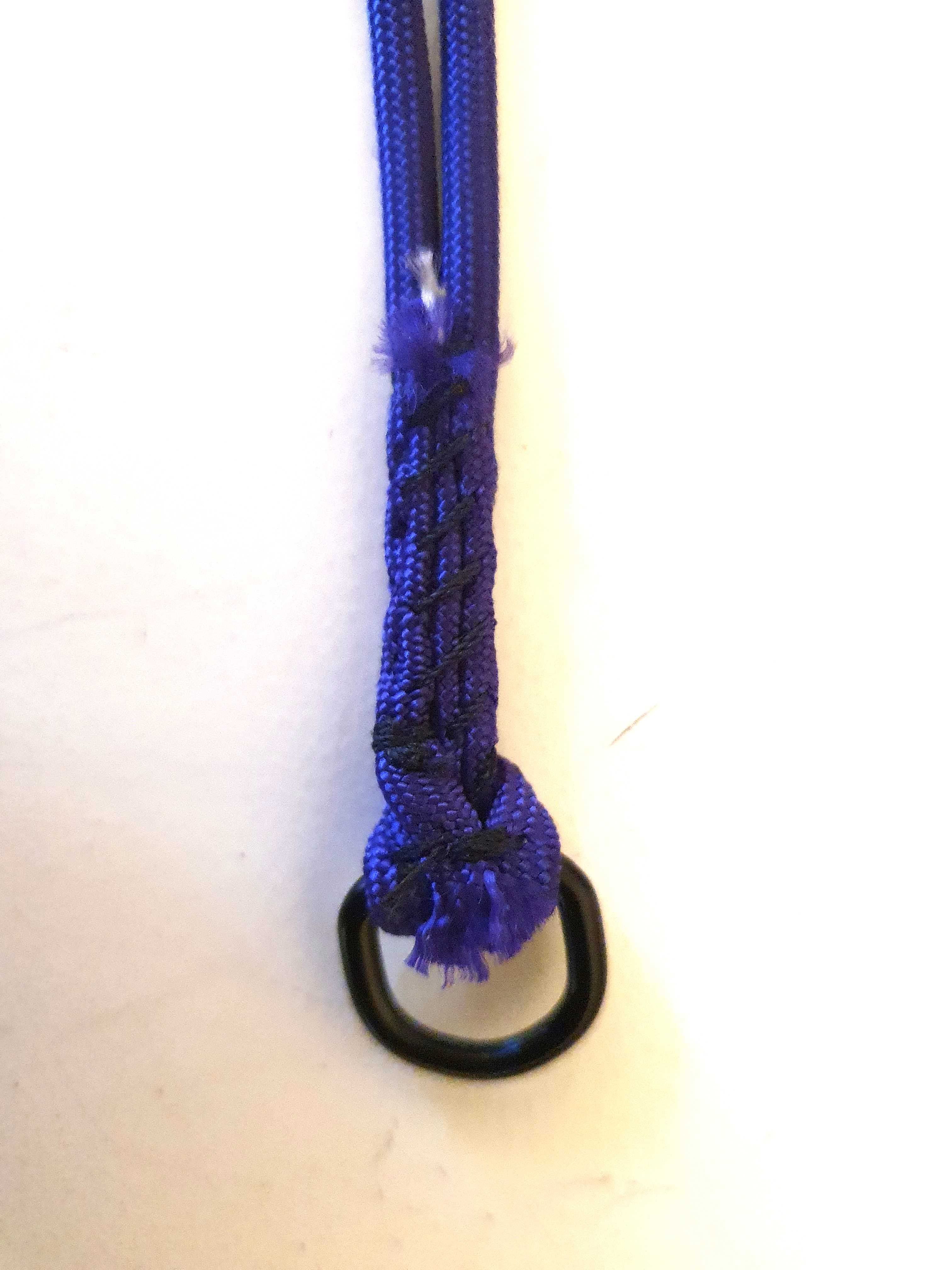 När jag blev med hund trodde jag att jag skulle sy hundhalsband i parti och minut. Så blev det inte. Hitintills har det blivit två (!) fungerande halsband, båda i samma storlek. Nu börjar de sitta trångt kring halsen så idag gjorde jag slag i saken och sydde ett nytt. Det som varit lite meckigt är att få till skarven mellan början och slut på paracordlinan.