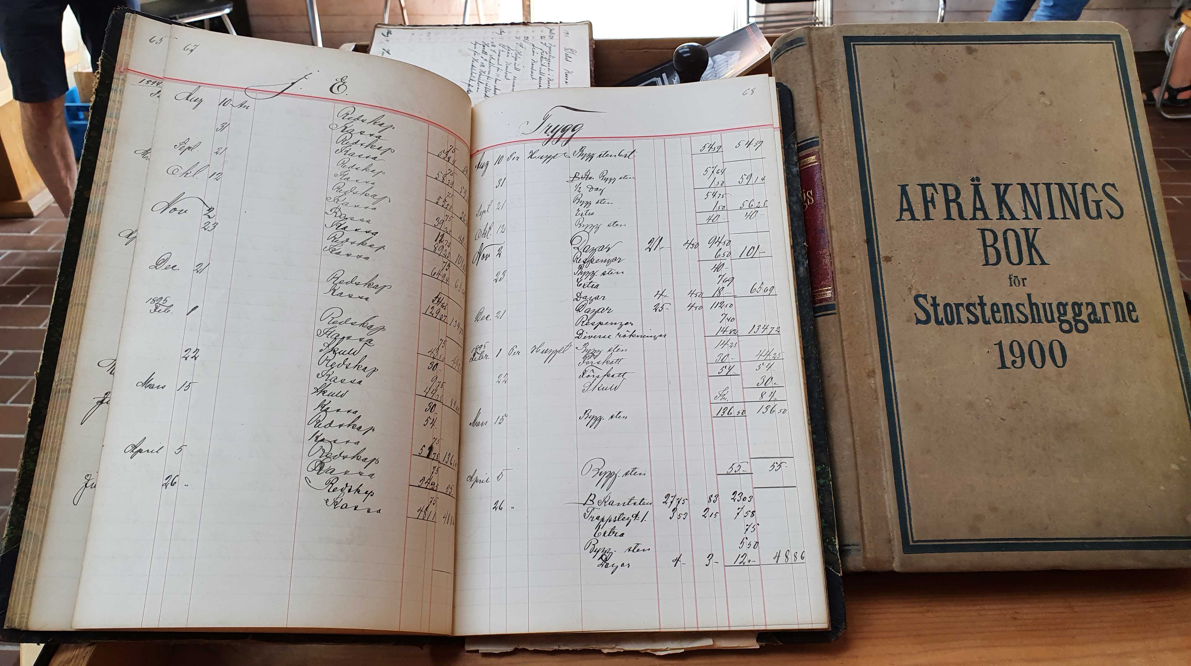 Söndrums hembygdsförening ställde ut foton och olika stenhuggarverktyg i Bastaskärs båthus, och man fick också se en kista som tillhört en av stenhuggarna och de här avräkningsböckerna.