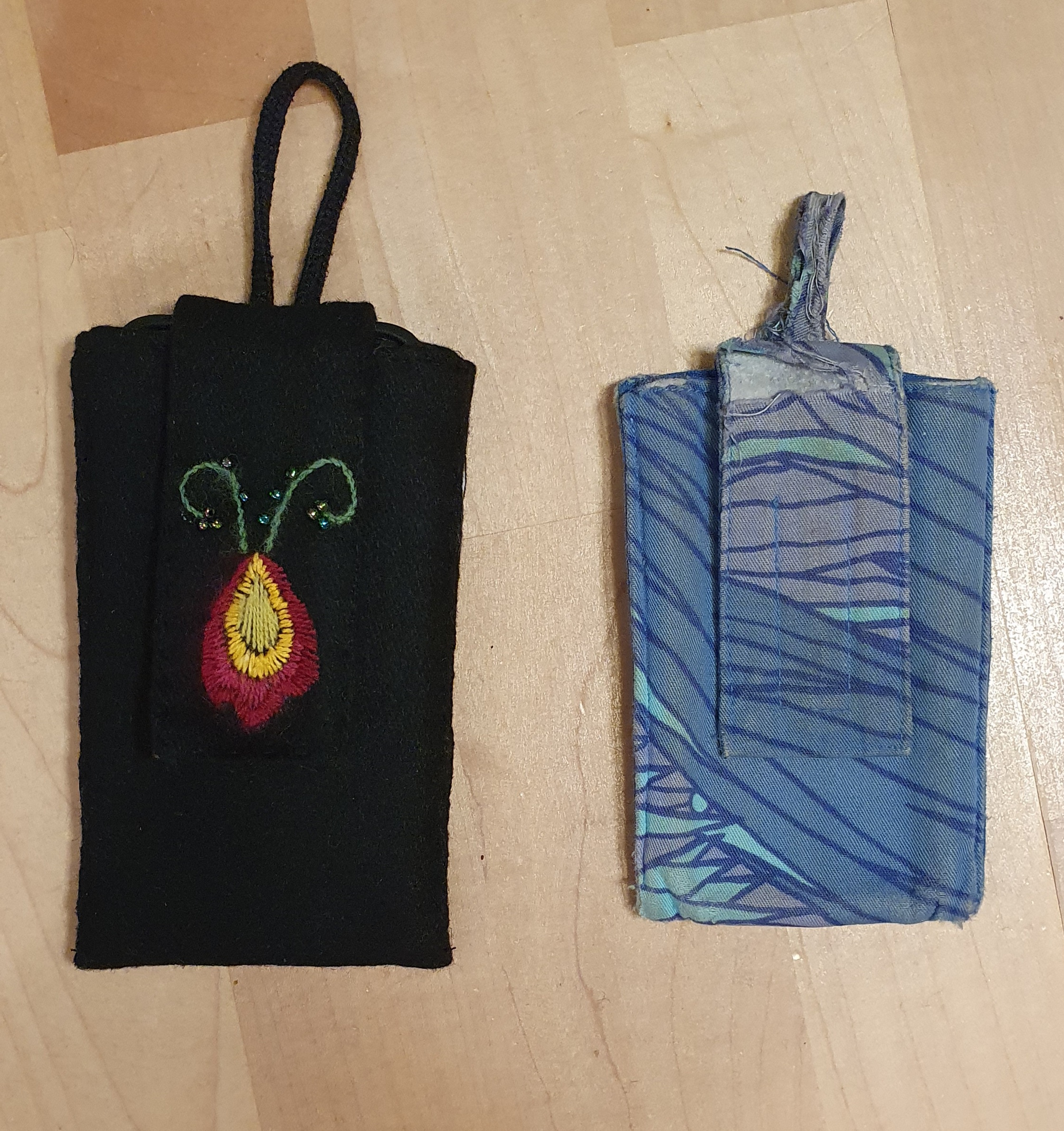 Jag har fått en ny jobbmobil och eftersom det gamla mobilfodralet var både slitet och för litet sydde jag ett nytt, inspirerat av kursen i yllebroderi jag gick i somras.