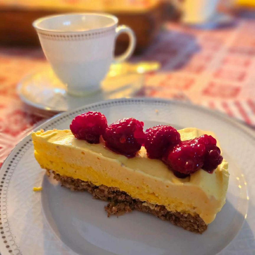 Vi inledde med småkakor och saffranscheesecake med mandelbotten kryddad med kanel och kardemumma.