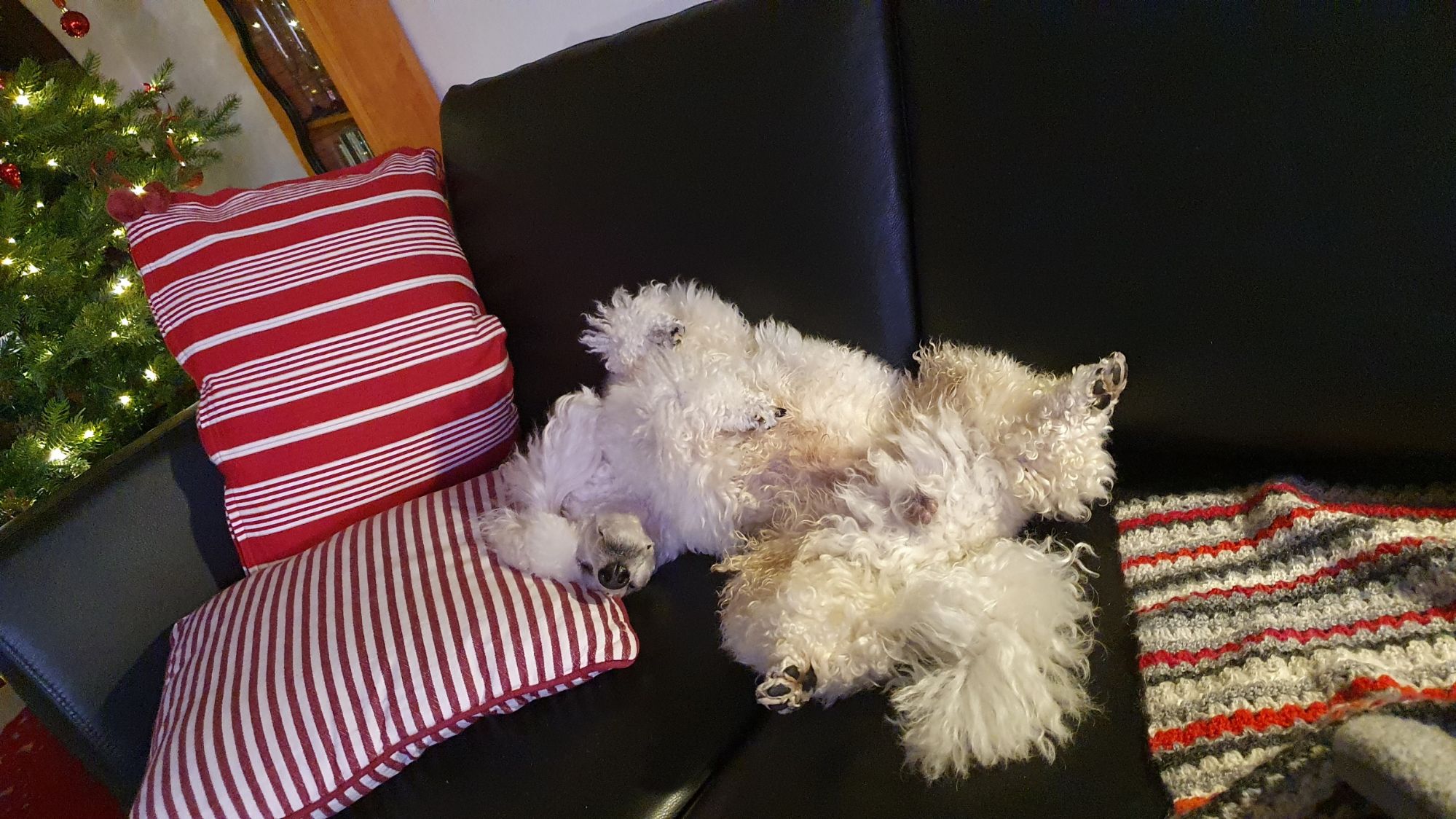 Julmaten åt vi lite senare. Far bar sin Afmaeli-tröja dagen till ära.