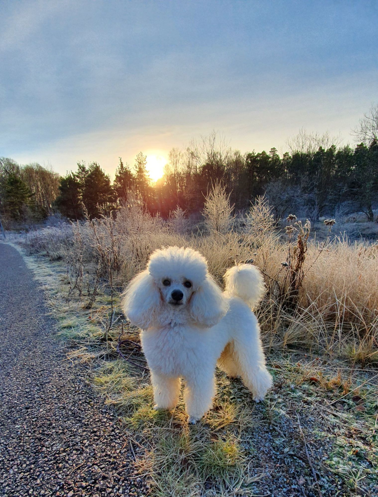 Sol och någon minusgrad, buskar och gräs i rimfrostdräkt