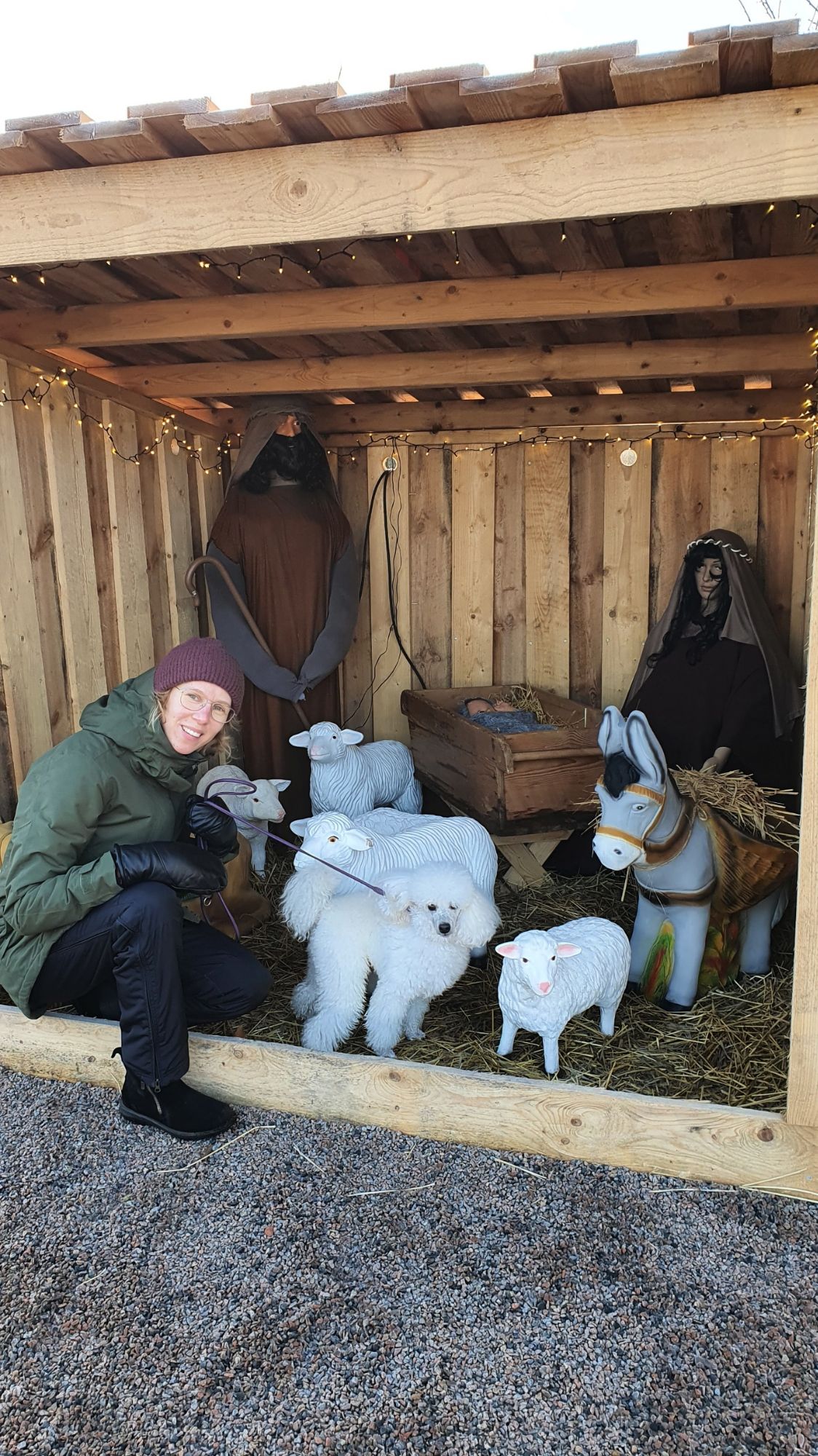 Vi gick till vår fina kyrka, Enslövs kyrka. Häromåret invigdes ett nytt gravplatsområde intill kyrkan. Det är mycket vackert, vann arkitekturpriset 2021, så det är kanske synd att jag inte fotograferade så mycket av det, men du kan läsa mer om det här. Idag ville vi titta på den stora krubban som ställs fram varje jul. Den anas till vänster i bild