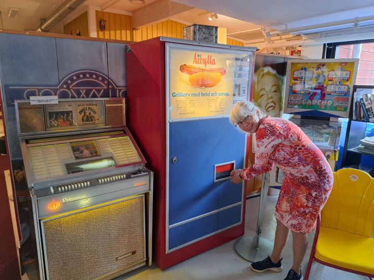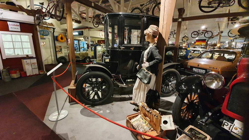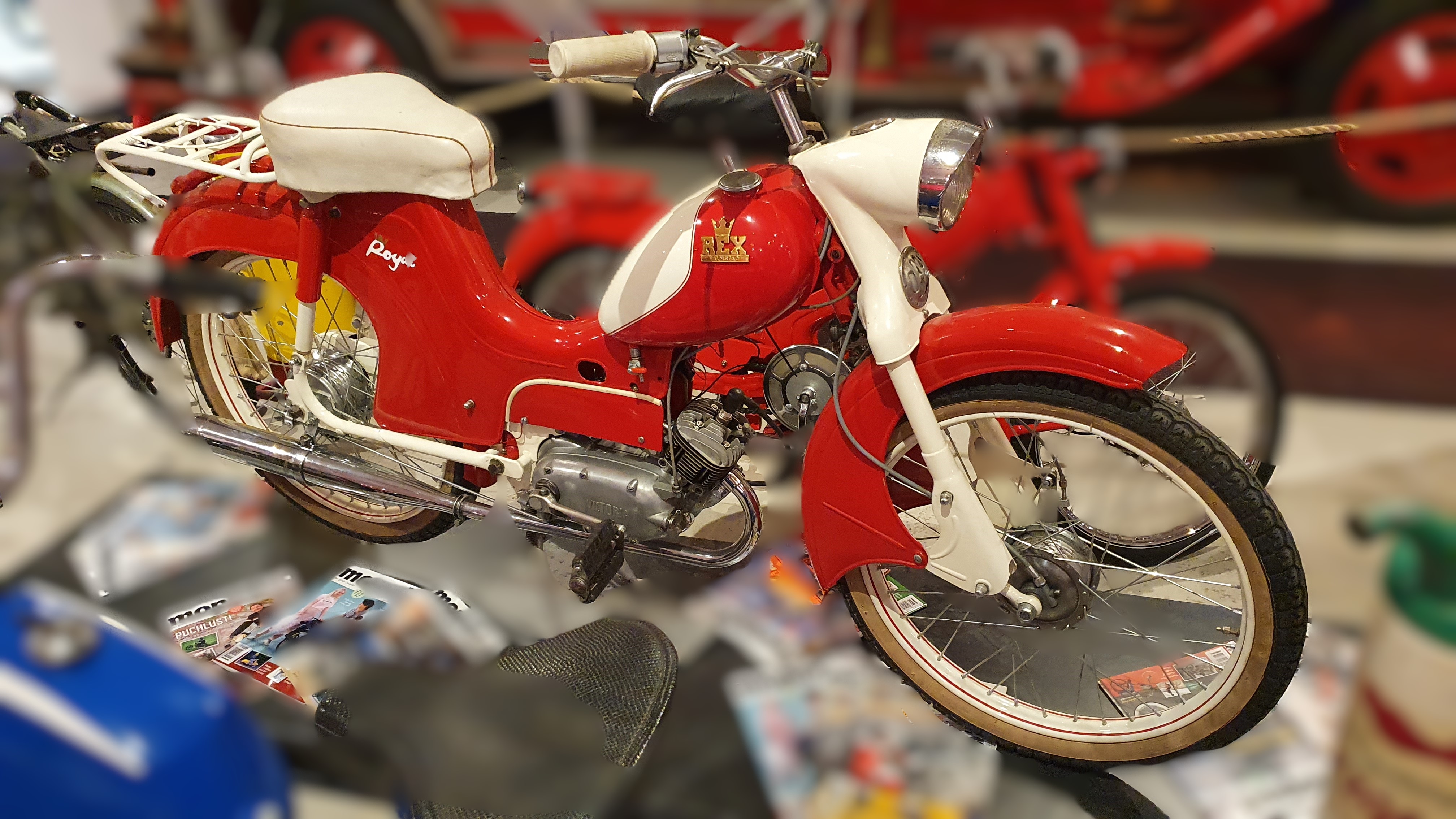 Efter en god hotellfrukost på Hotell Nostalgi besökte vi Motormuseumet som ligger vägg i vägg med hotellet. Vad var det första vi såg? Jo, denna rödvita skönhet från vår hemstad Halmstad – en Rexoped Royal från sent 50-tal, tidigt 60-tal.