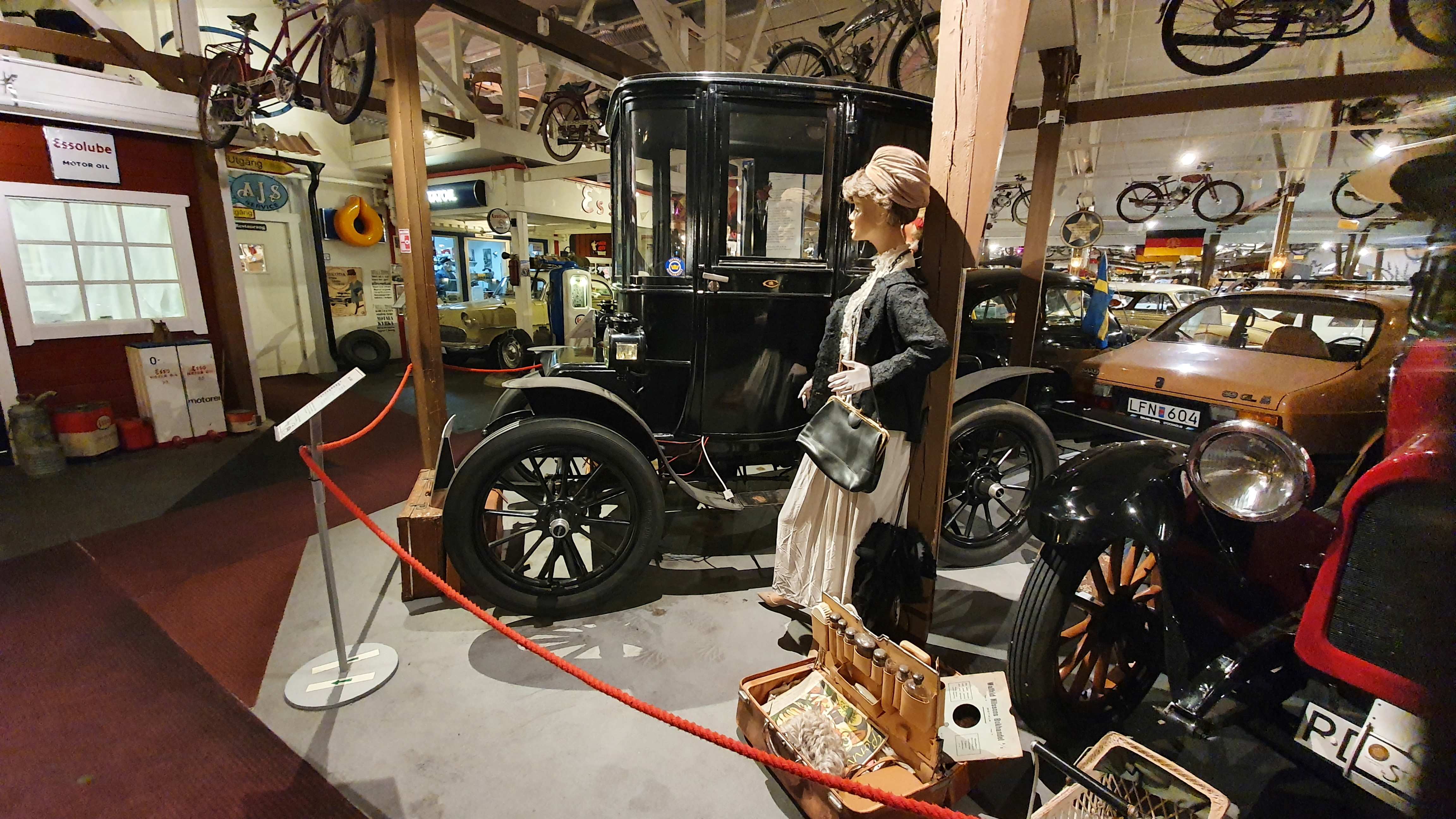 Den farmor Anka-liknande bilen bakom damen är en Baker Electric – en elbil från 1908! En sån hade Thomas Edison som sin första bil. Han utvecklade NiFe-batteriet, just med tanke på elbilar. Detta hade bra kapacitet men tog lång tid att ladda och blev inte den framgång som han hade hoppats på. Apropå laddning av elbilar skulle det kunna bli ett helt blogginlägg om bara våra olika laddstopp på den här resan … Här hittar du en artikel (Edisons dröm lever) om några forskare som för tiotalet år sedan utvecklade hans batteriteknik. Det är intressant det här att man gjorde elbilar för mer än 100 år sedan och så har utvecklingen inte kommit längre, men flyga till månen kan vi. Här kan du se en annan gammal elbil – i trä! – som vi såg på ett annat motormuseum häromåret.