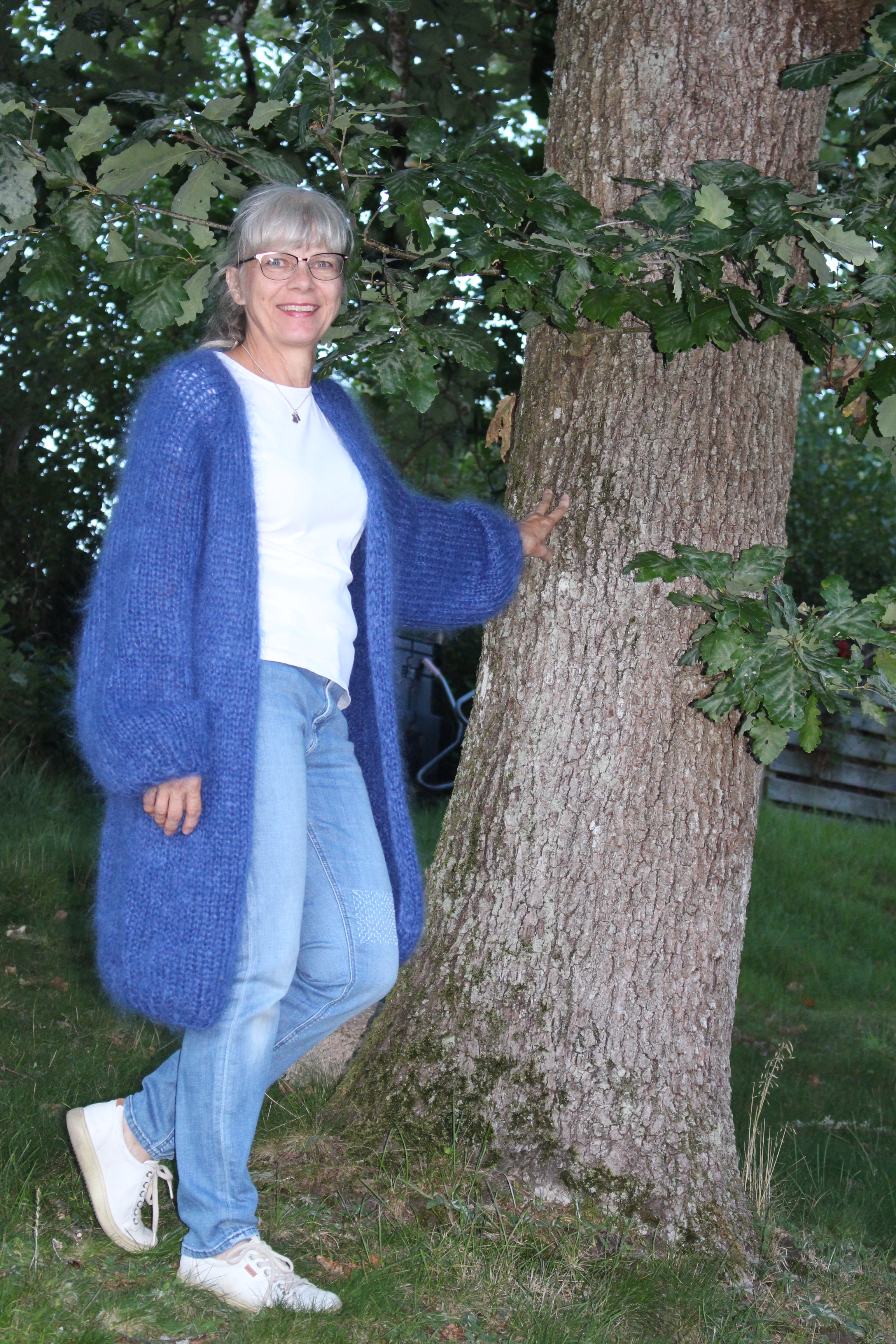 Vad hände med det blåa lurvet, kanske du undrar? Räckte garnet? Jodå – det räckte … nästan. Jag fick skippa det sista varvet på resåren vid halsen så gick det jämnt upp. Nu när jag använt koftan känner jag att det inte gjort något om jag stickat ärmarna lite kortare.