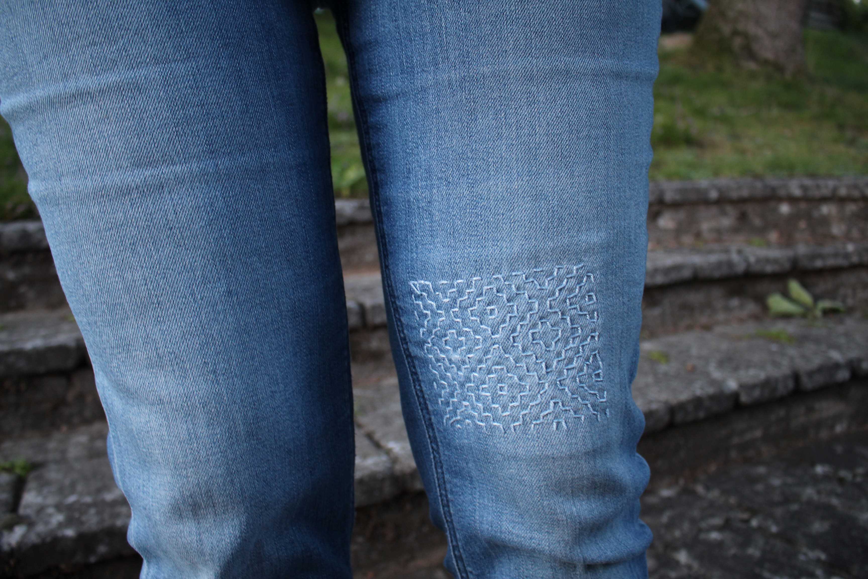 På tal om byxor förresten, kolla in mina jeans! Mina älsklingsjeans börjar bli slitna så i somras bestämde jag mig för att försöka förlänga livet på dem med sashiko, hittade tydliga instruktioner här. Jag tycker det blev riktigt fint.