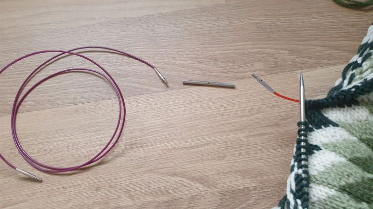 Det var både bra och dåligt när jag upptäckte att man kan koppla ihop olika stick-kablar och ändstickor. Bra för att man inte behöver köpa nya rundstickor så fort man behöver en ny kabellängd eller en ny grovlek på stickor, dåligt för att jag nu sparar ett projekt på en kabel, skruvar loss ändstickorna från kabeln och sätter på en annan kabel så att jag på så sätt kan ha fler stickprojekt på gång samtidigt än vad jag hade tidigare. Men jag vet att jag inte är ensam om att ha flera stickningar på gång samtidigt. Häromdagen lyssnade jag exempelvis på Nördic knittings podcast med en intervju med stickdesignern Kristin Wiola och hon berättade att hon har åtminstone 5-10 på g samtidigt. Jag har räknat alla jag hittat här hemma och kommer upp till 4 – 5 om jag räknar med en av min mors stickningar som jag lovat sticka klart. Man kan väl egentligen inte jämföra med en designer som har stickningen som sitt jobb, men det låter lite förlåtande att jag bara har hälften så många projekt på gång. Hur många projekt har du på gång nu – och vad stickar du?