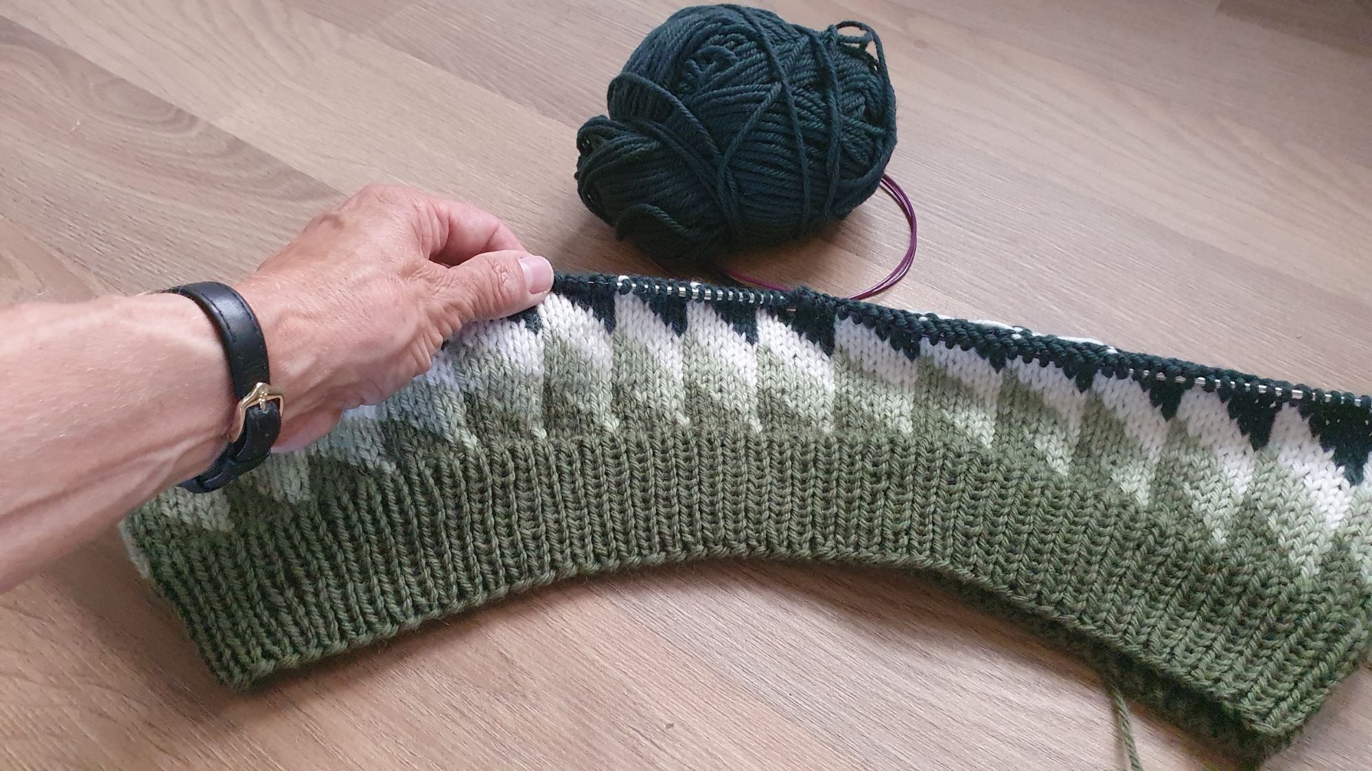 Ja, tänk, trots att jag stickat sen jag var liten (vilket innebär ungefär 55 år) behövde jag komplettera med ändstickor i somras. Inte så konstigt kanske, det är sällan man stickar med stickor 12. Jag hoppas Johan ska gilla tröjan när den är färdig.