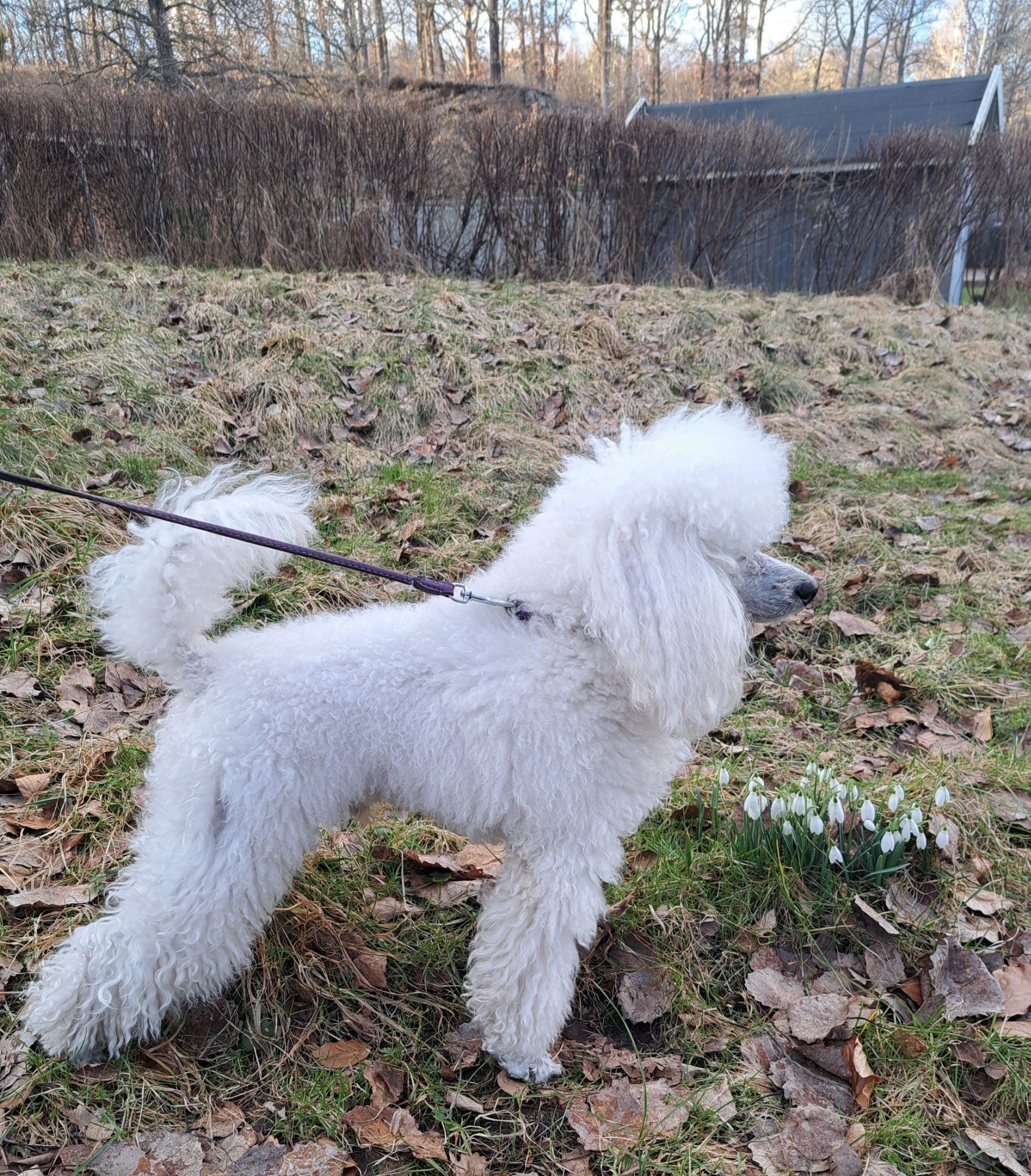 Och på våra hundpromenader kan vi nu njuta av krokus, vintergäck och snödroppar lite varstans.