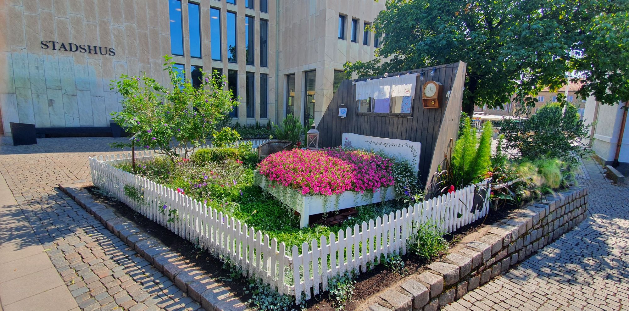Sen åkte vi in till Falkenbergs centrum och såg många fina planteringar, bl.a. ”Sovro i sommaräng”.