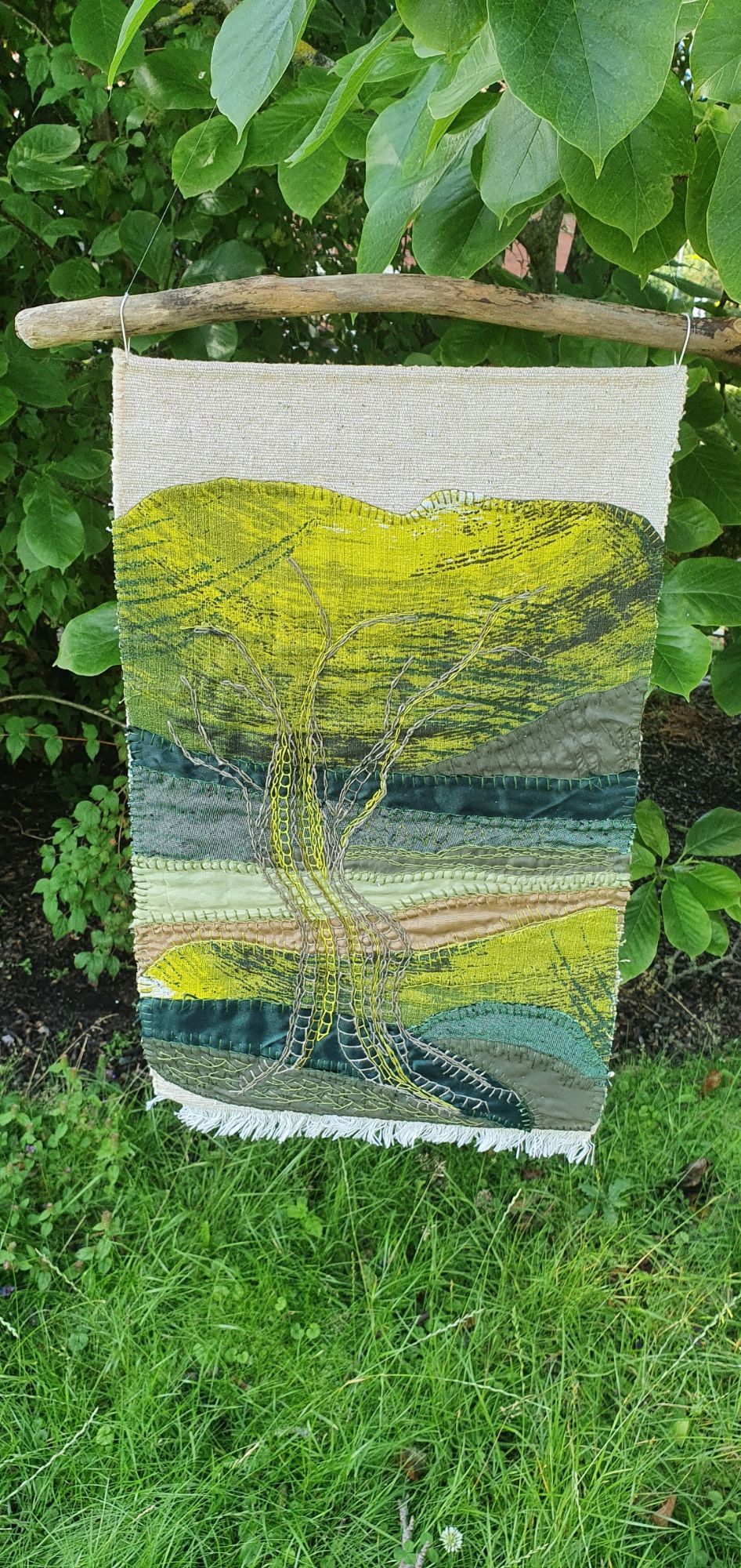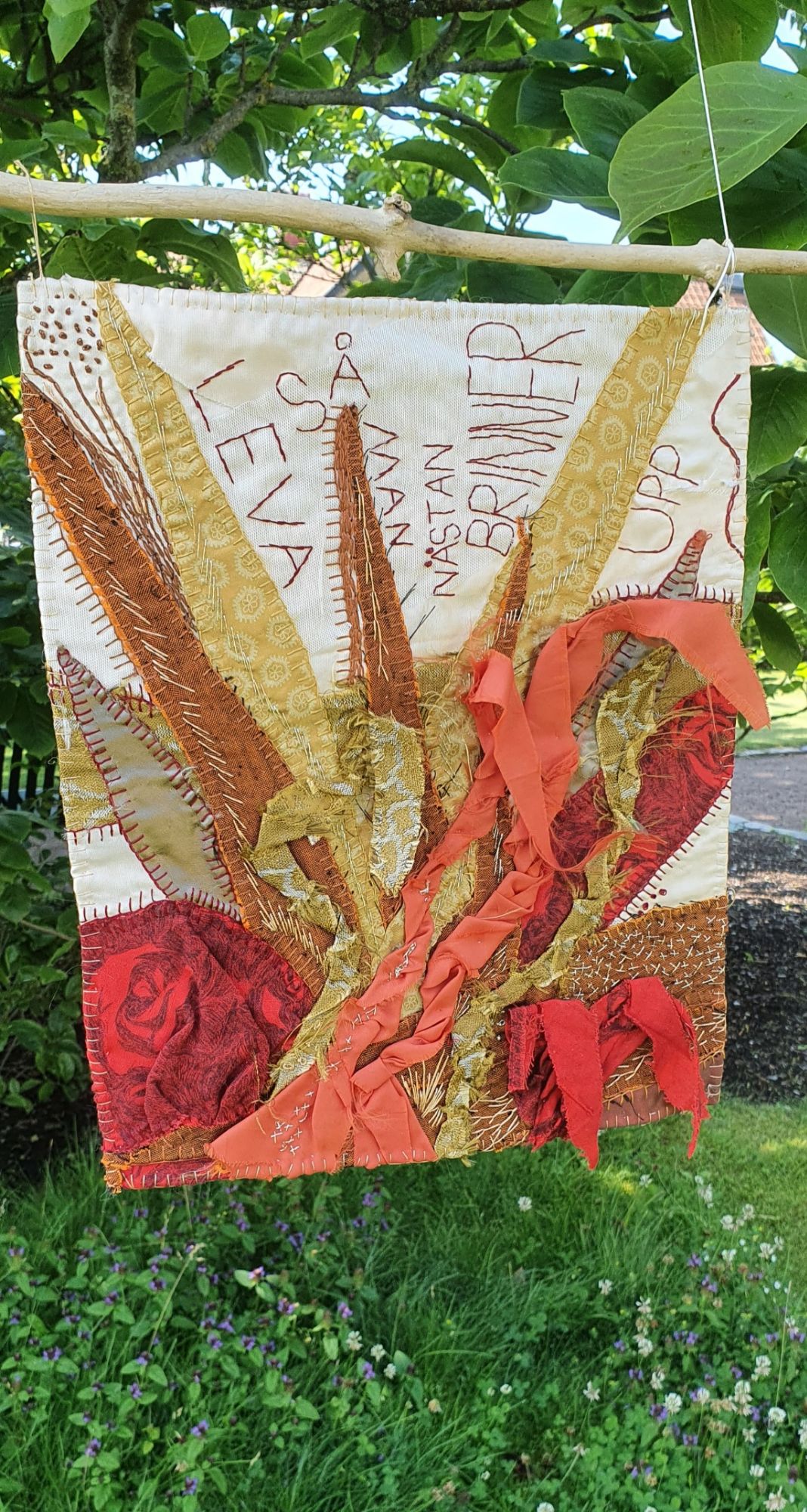 Här är två textila verk av Pia Boketun som gör bilder i textil och papper.