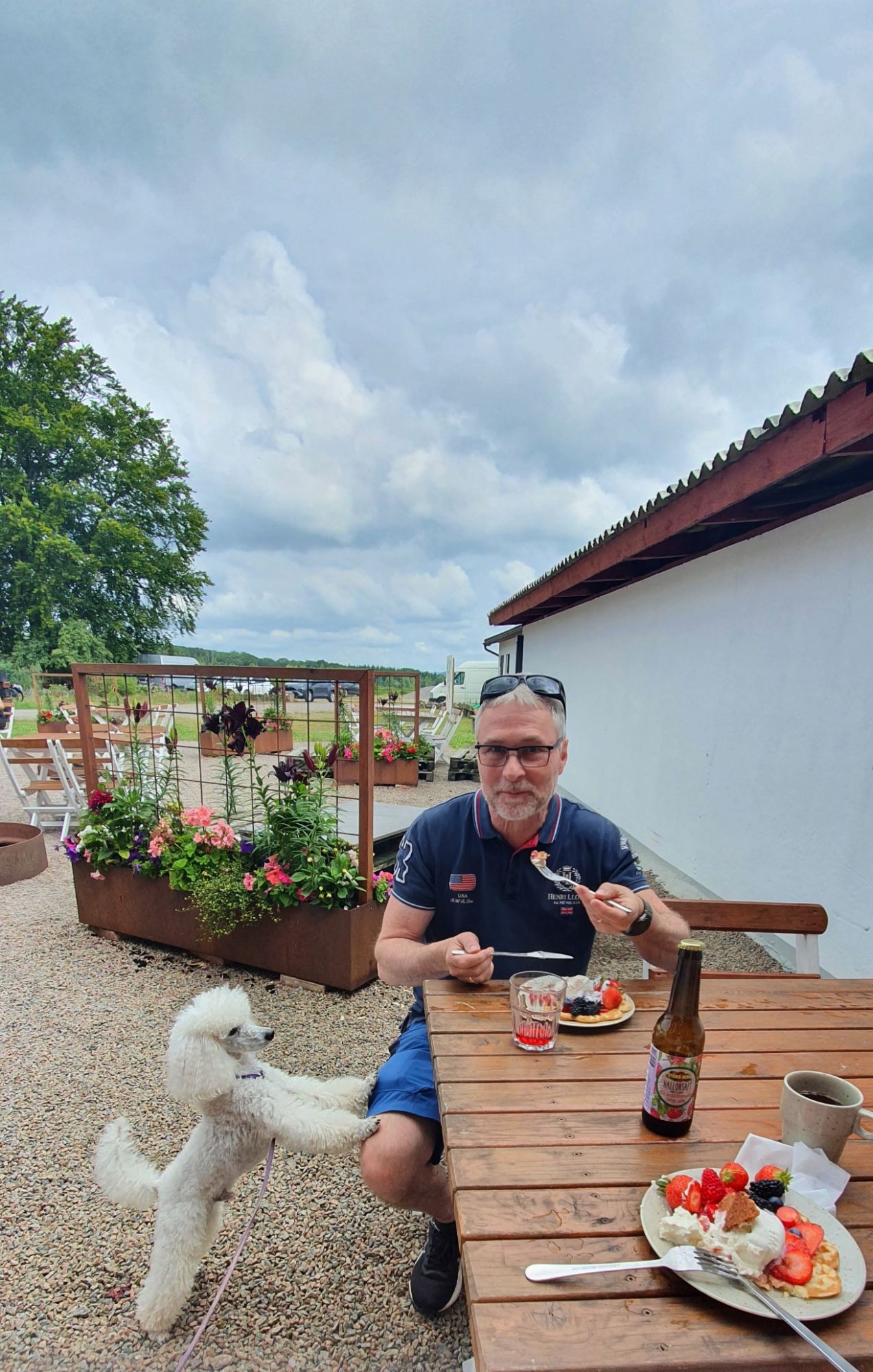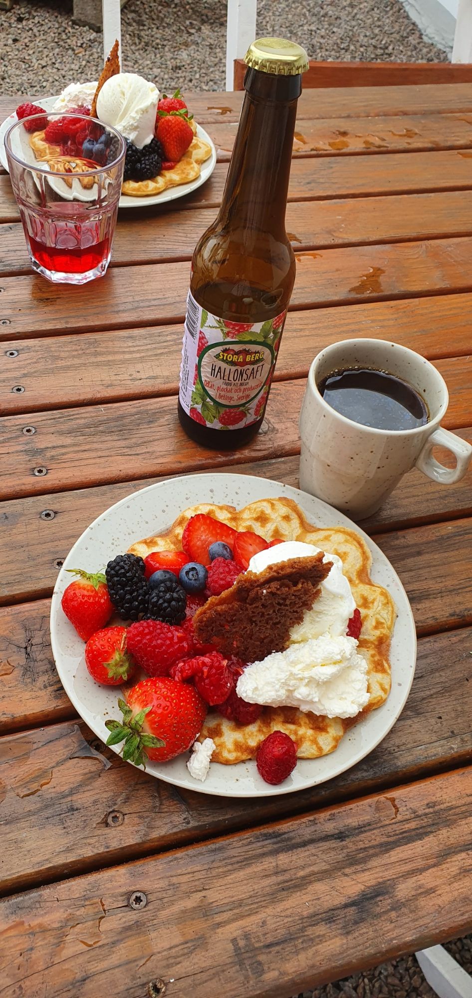 Så styrde vi kosan mot Stora Berg utanför Getinge. Där finns självplock av jordgubbar och hallon, dock inte idag. Men bärbuffén var framdukad: