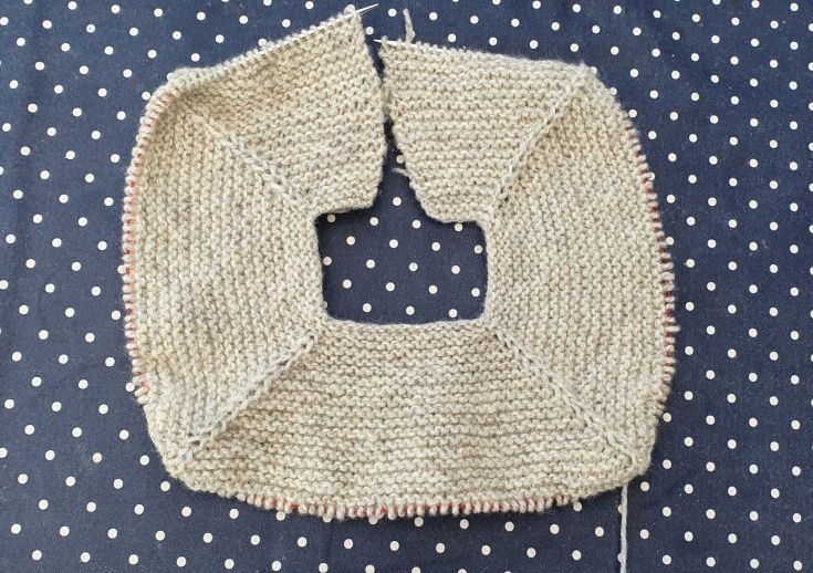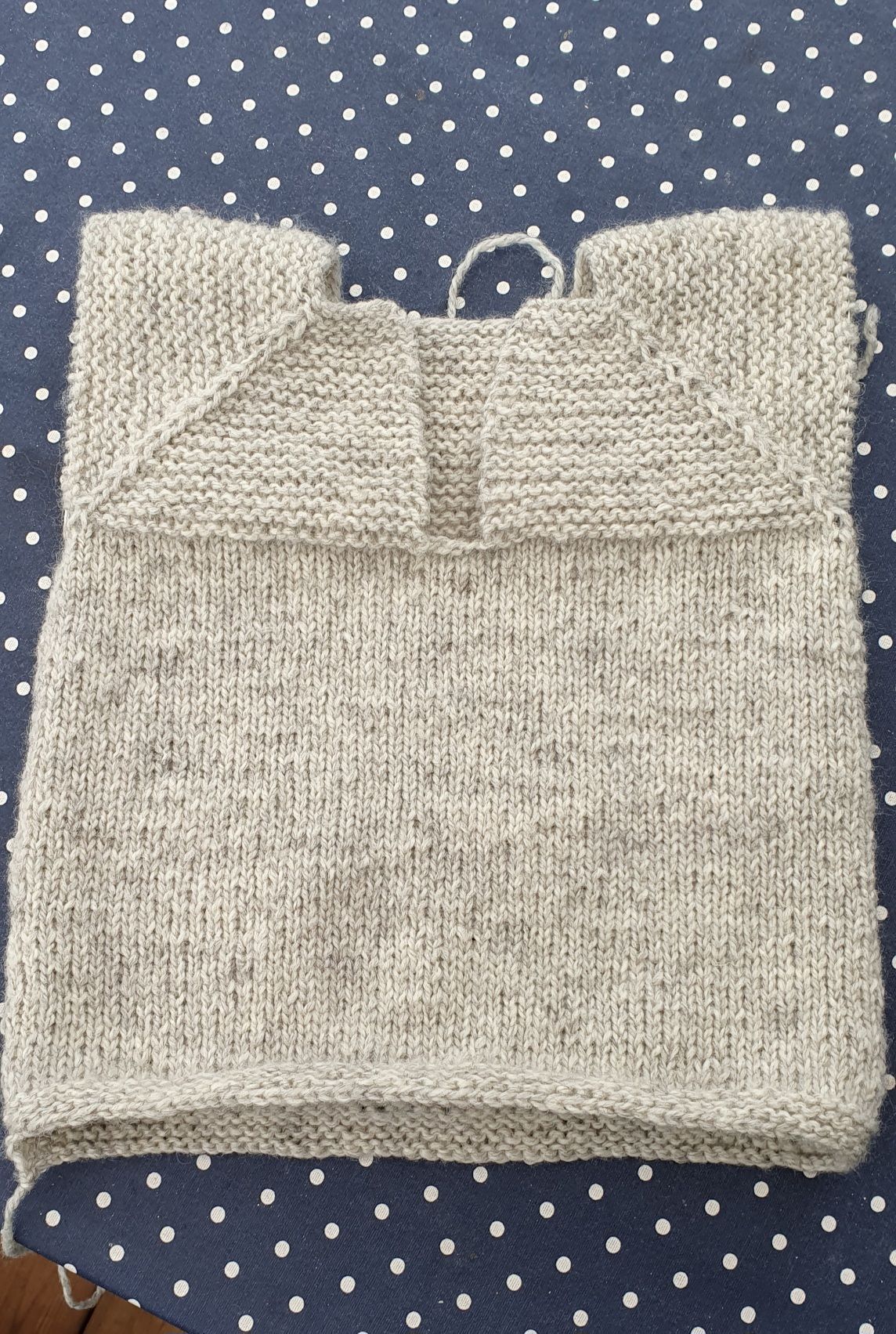 Knäppningen ska vara bak. Det var rolig stickning. Här ser du principen för hur tröjan skapas:
