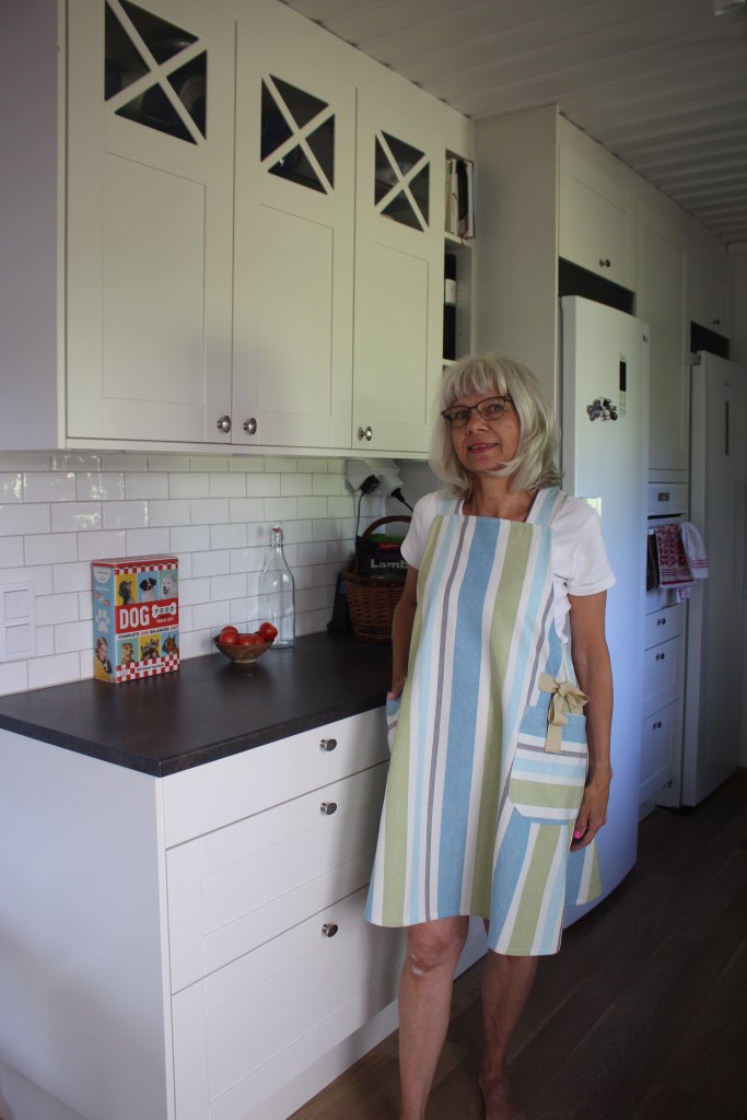 Mönstret blev trots allt klart och idag har jag sytt ett förkläde efter det. Det tredje efter samma mönster, men det första i min egen storlek.