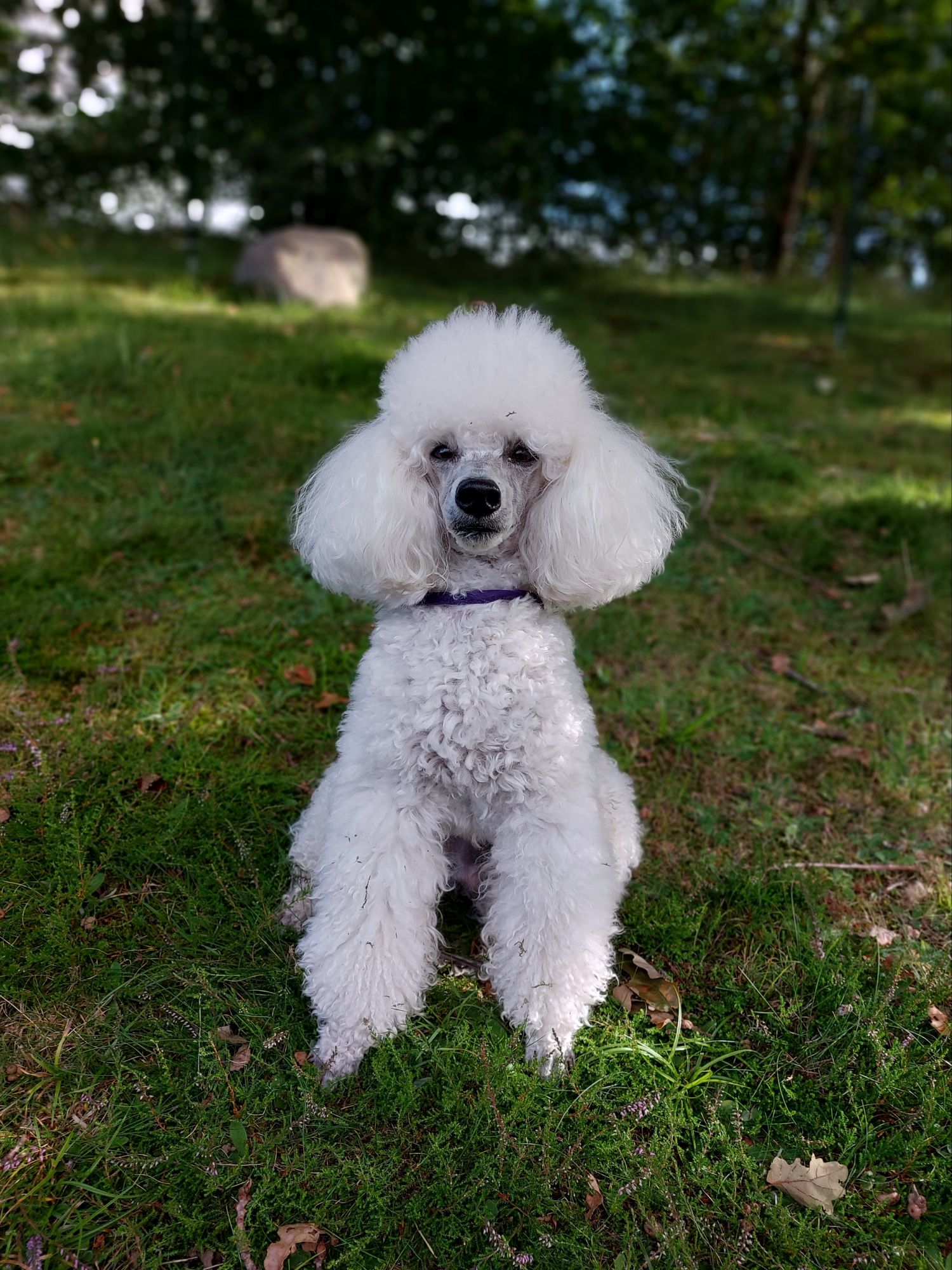 Härligt att ha dig hemma igen, lilla pälskling! Nu blir det en långpromenad, bäst att passa på medan solen skiner. I eftermiddag kan det bli regn, bra väder för att vara inne och stryka. Det ligger en hel hög med klänningar och väntar …