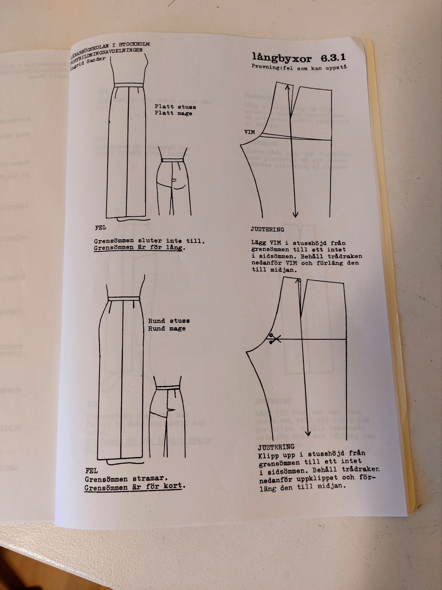 Jag tyckte att byxorna blev för vida över stussen och testade att göra ett VIM mitt bak enligt instruktioner i det här gamla häftet (också från textillärarutbildningen):