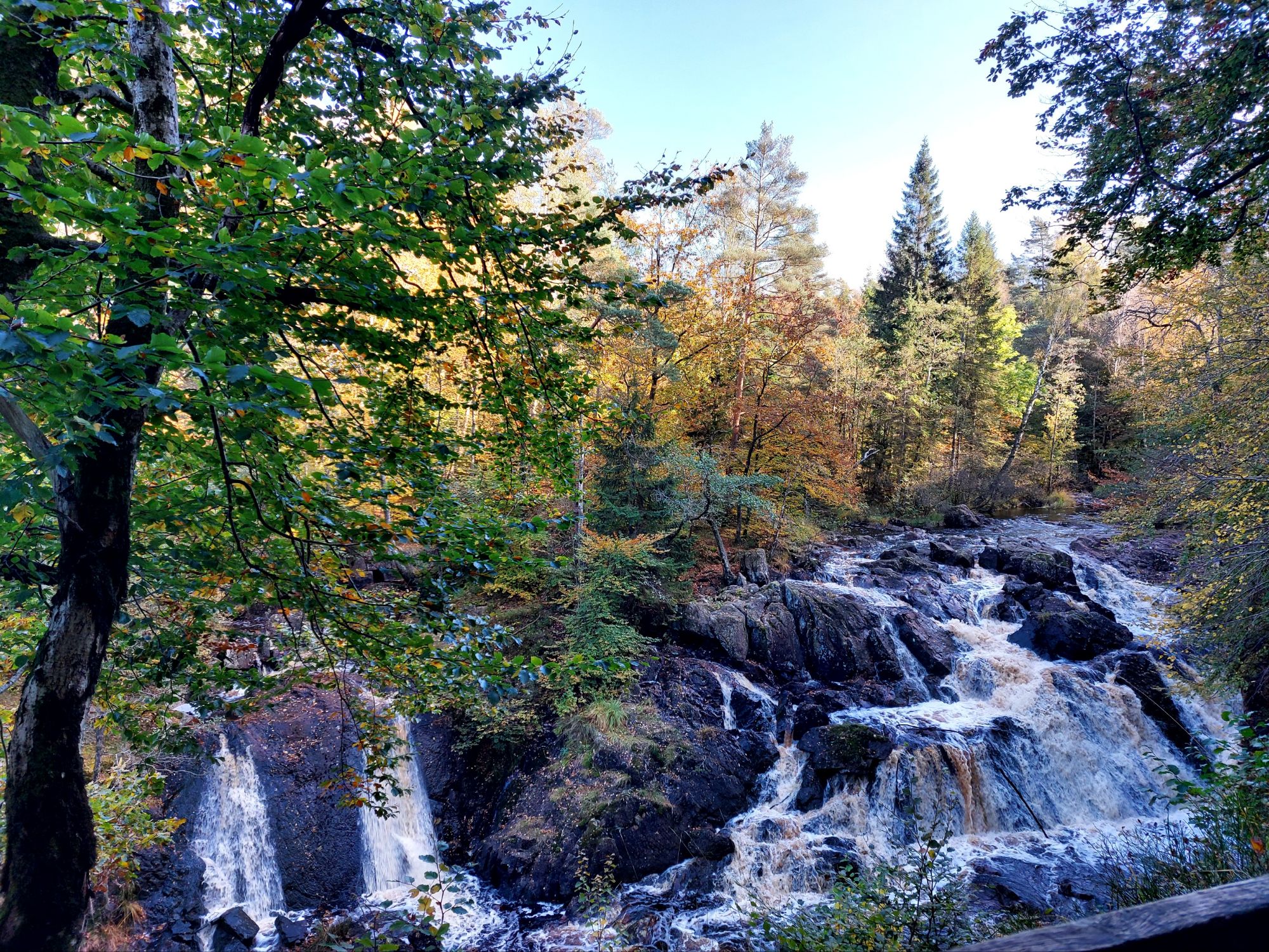 Ja, det är fint – och det låter härligt, trodde det träden som susade när vi närmade oss, när det i själva verket var fallet som brusade 🙂