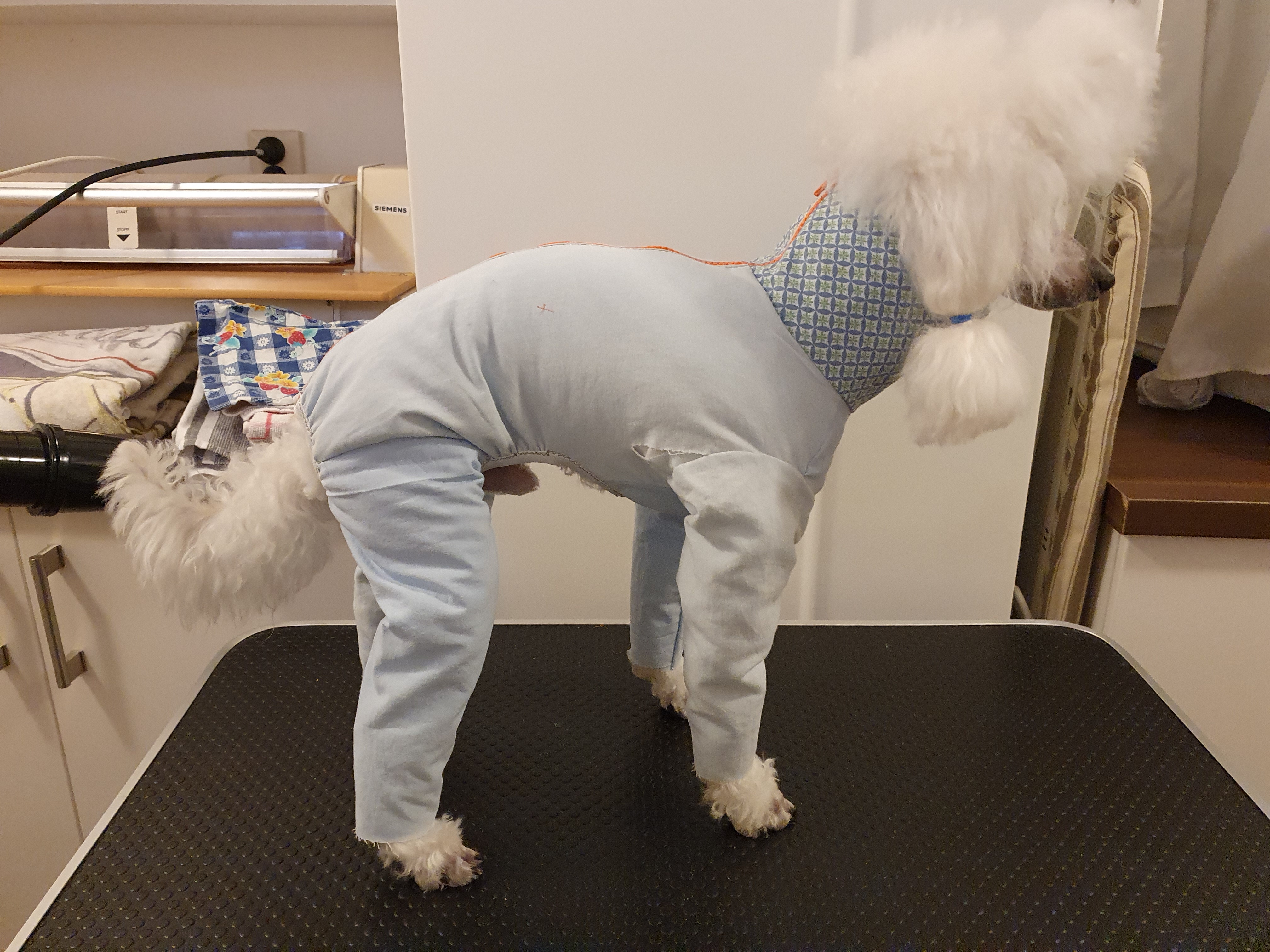 Fendi gillar inte att ha kläder på sig. Det kan möjligen uppstått någon sorts trauma när han provade en overall som jag själv designat när han var mindre:
