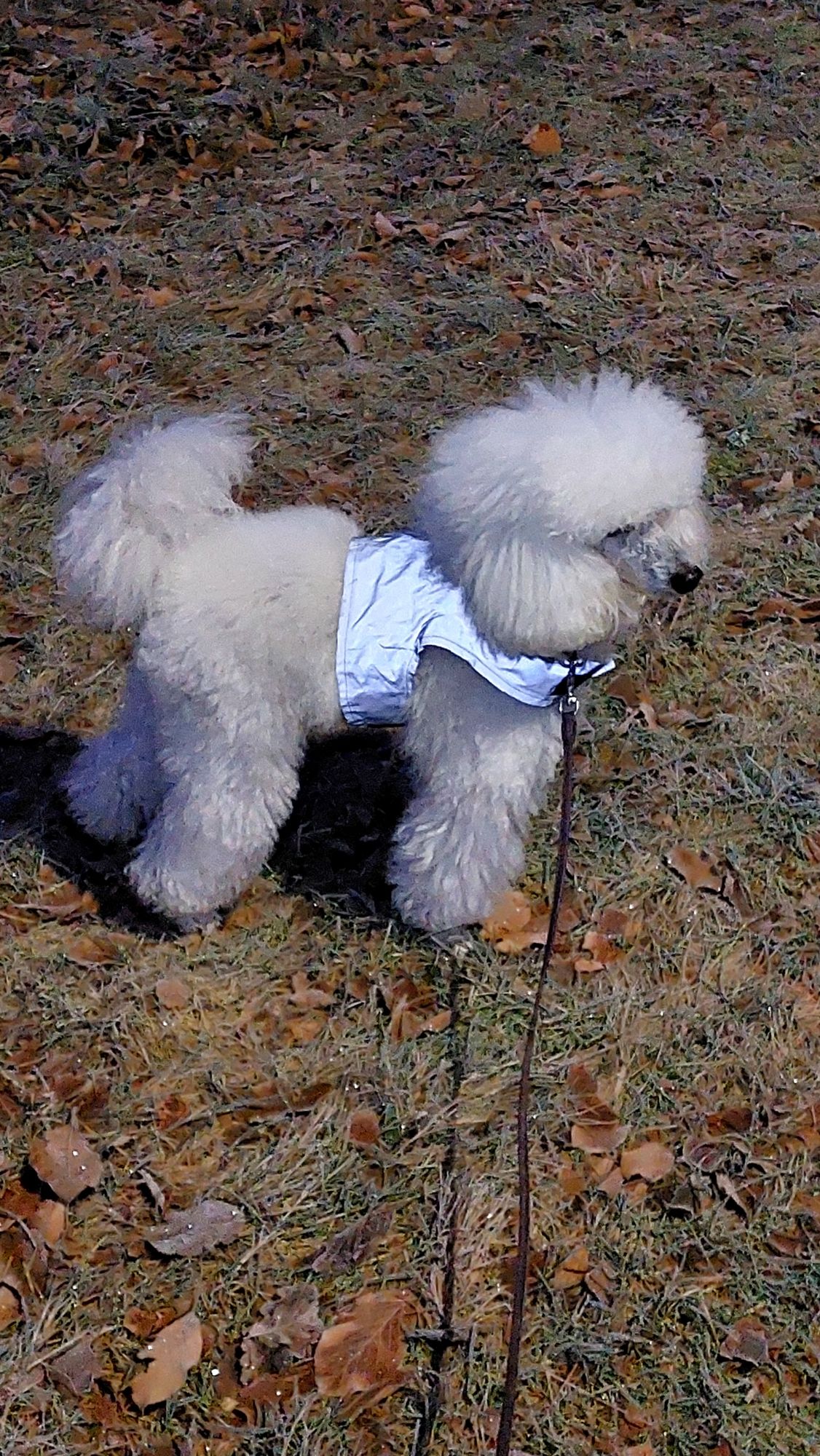 Reflexvästen återinvigdes på morgonpromenaden i morse. Funkade bra som synes!