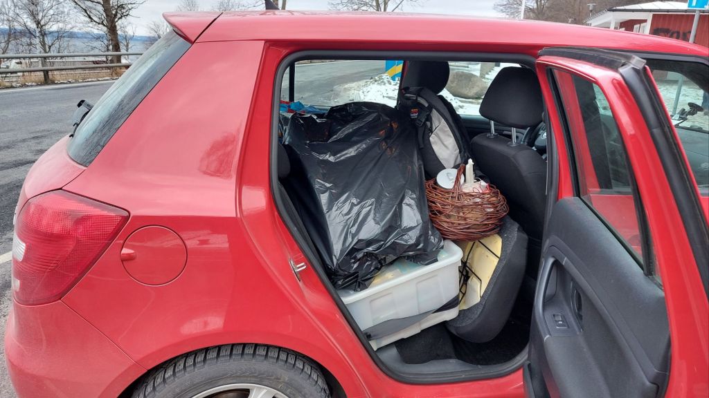 Eftersom Uffe också slutat jobba har han lämnat tillbaka sin tjänstebil men vi har ju kvar min lilla röda Skoda. Fantastiskt vad en liten Skoda rymmer när man fäller baksätet: fyra lådor med dockor och böcker, en liten stol, en gunghäst och Fendis hundbur. Och vi kunde äta var vi ville – annars brukar vi stanna på ett laddställe med restaurang för att spara tid genom att ladda bilen samtidigt som vi äter. Vi åt på Matkultur strax utanför Linköping. Vi hade aldrig ätit där förut och vi hade nog inte hittat dit om inte Uffe läst om stället i tidningen Vi Bilägare. Någon gång om året recenserar de matställen längs allfarvägar. Matkultur hade fått bra betyg och det förstår jag. Maten var jättegod. Vi valde fisk: ångkokt lubb med gubbröra.