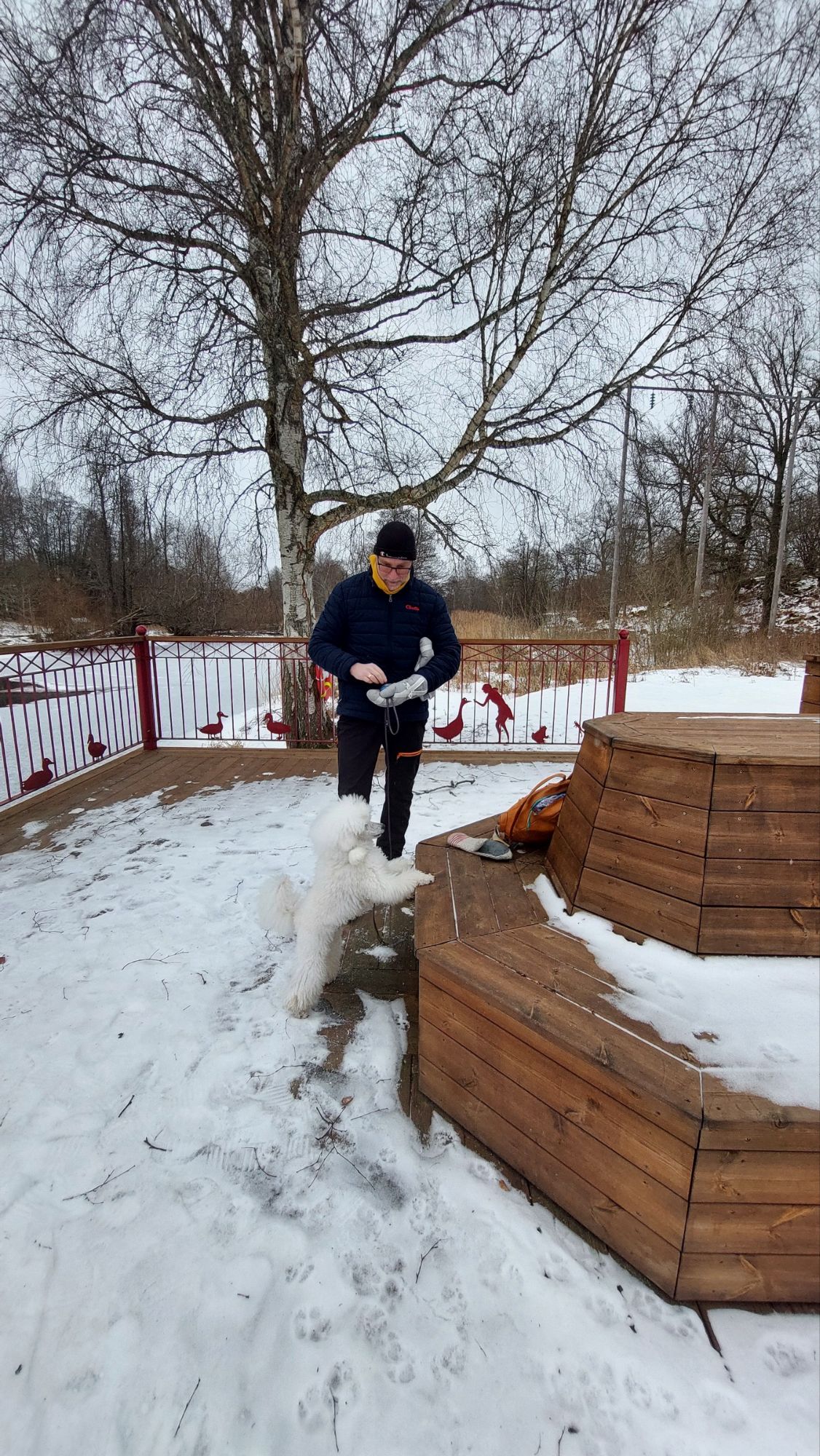 Det var väldigt fint väder hos dottern igår: sol, klarblå himmel och gnistrande snö, och vi njöt av en lång promenad i det vackra vädret.