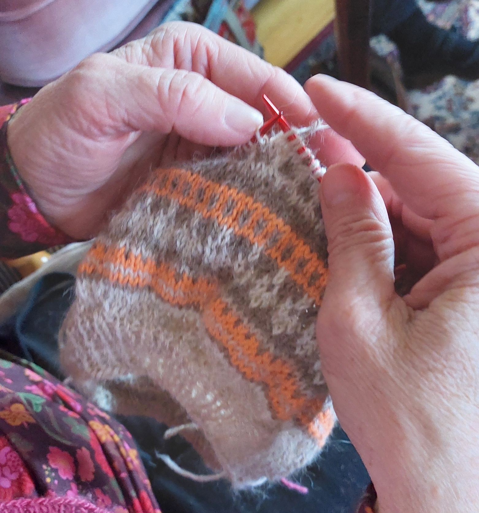 Carina, dagens värdinna, stickade också på en barntröja, och barnbarnet hade själv valt färgerna – en helt underbar färgkombo!