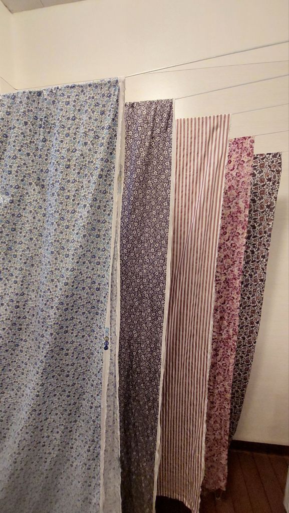 Fem tyger valdes ut från tygförrådet, tvättades och hängdes på tork.