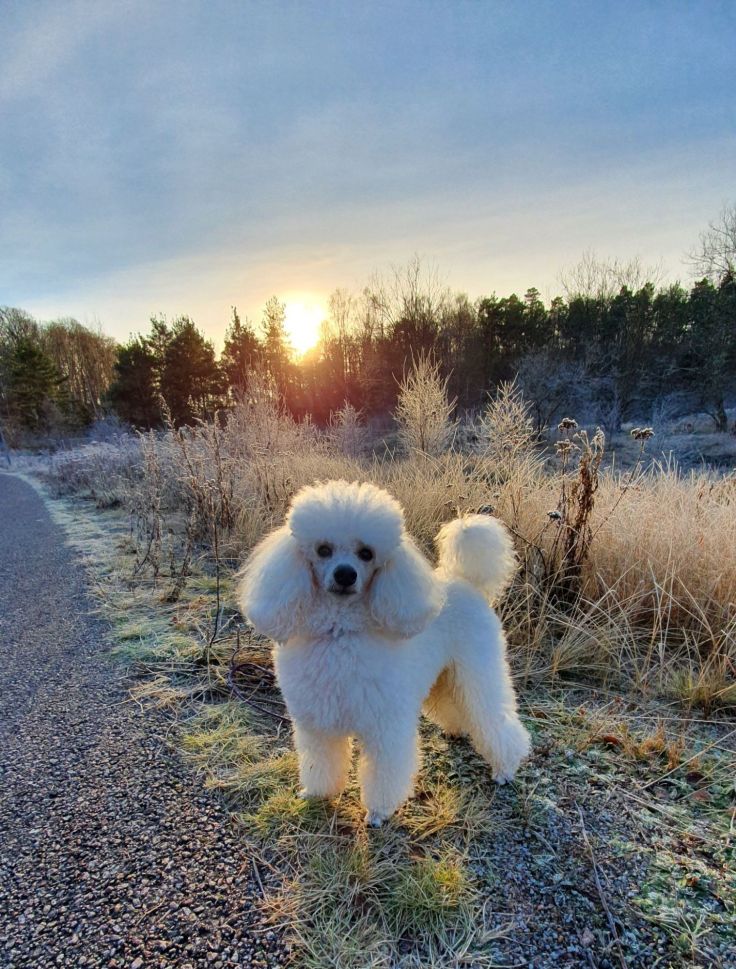 En vit hund gör sig bra i motljus. Visst e´ han stilig, min lille pälsprins?!
