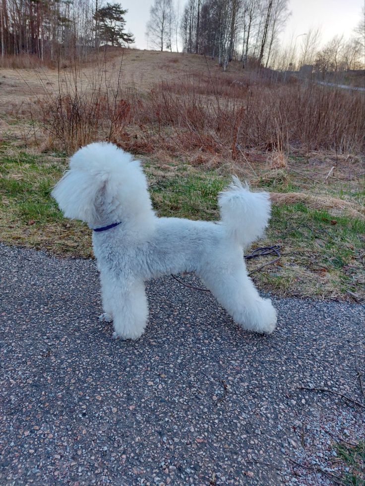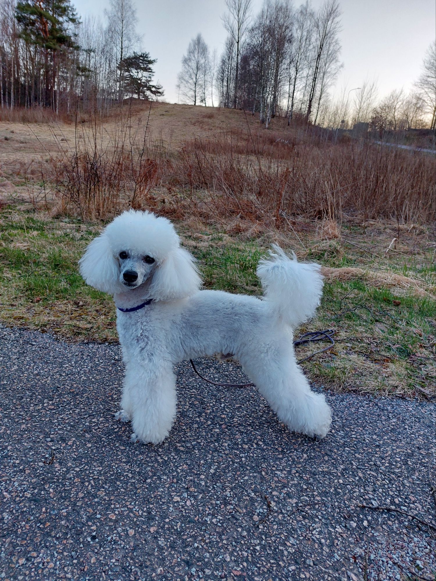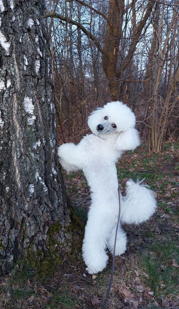 När jag kom hem gick jag och Fendi en tidig kvällspromenad. Han är så rolig: har lärt sig att matte ibland gömmer godis i träden så när han tycker det är dags för lite gott ställer han sig mot ett träd och tittar på mig med ”Var är godiset”-blick.