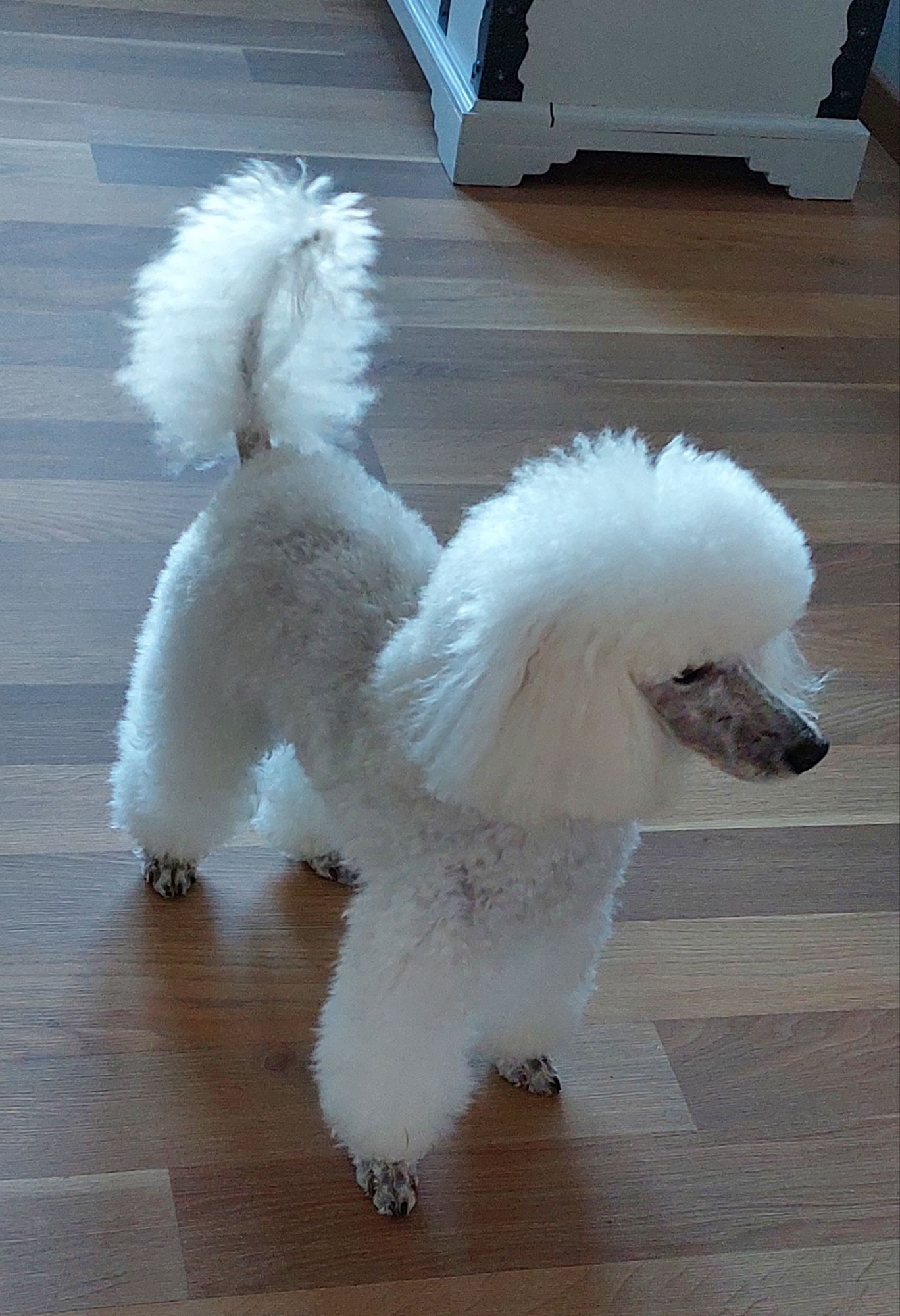 Jag har använt klippmaskin på kroppen, men saxklippt benen.