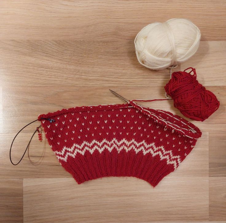 en kofta till Rut, yngsta barnbarnet. Det ska bli stjärnor på den också så småningom.